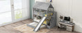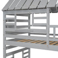 Twin Over Twin House Bunk Bed With Trundle And Slide, Storage Staircase, Roof And Window Design, Gray Old Sku: Gx000931Aae Box Spring Not Required Twin Gray Wood Bedroom Bunk Pine