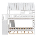 Twin Over Twin House Bunk Bed With Trundle And Slide, Storage Staircase, Roof And Window Design, White Old Sku: Gx000931Aak Box Spring Not Required Twin White Wood Bedroom Bunk Pine