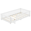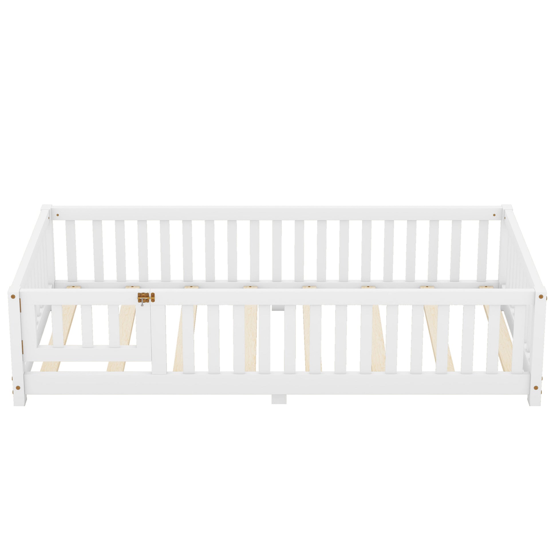 Twin Size Bed Floor Bed With Safety Guardrails And Door For Kids, White Old Sku:W158090683 Twin White Pine