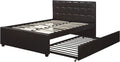 Twin Size Bed W Trundle Slats Espresso Faux Leather Plywood Kids Youth Bedroom Furniture Wooden Slats Square Box Upholstered Headboard 1Pc Bed Espresso Bedroom Contemporary,Modern,Transitional Mdf Plywood