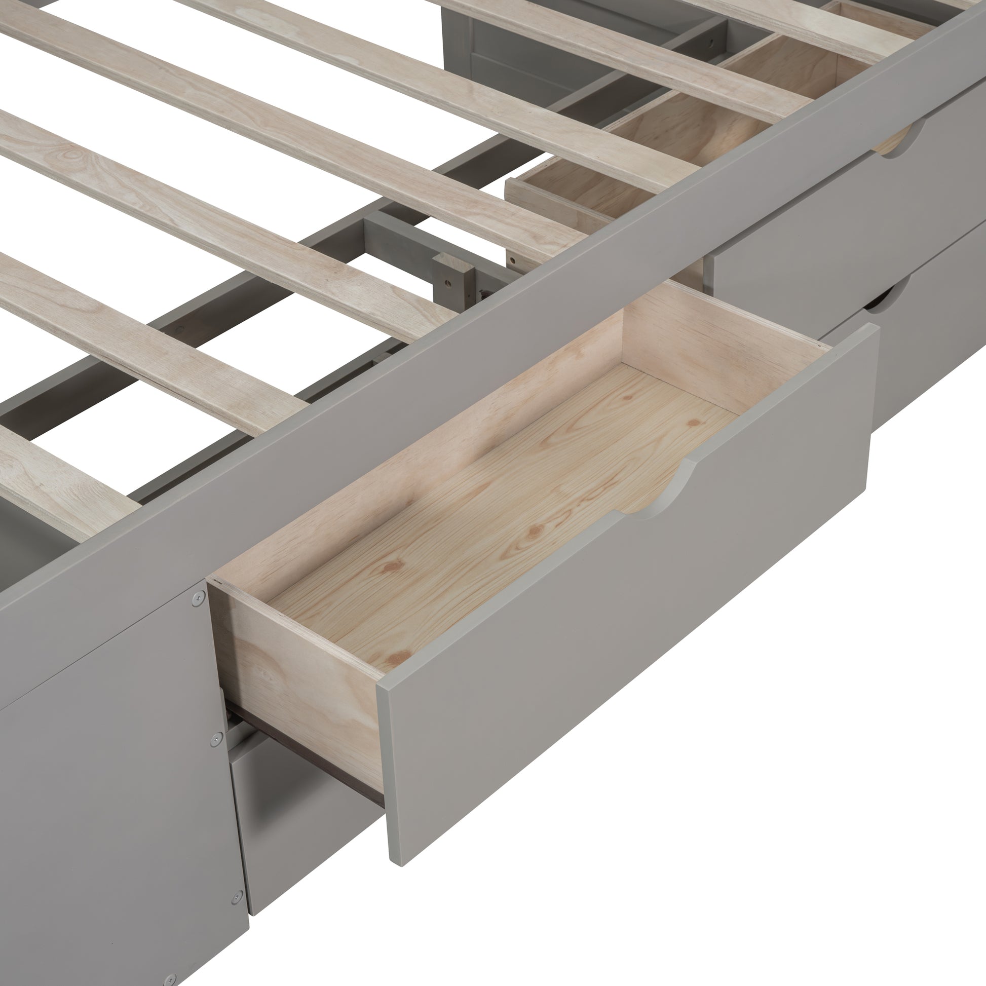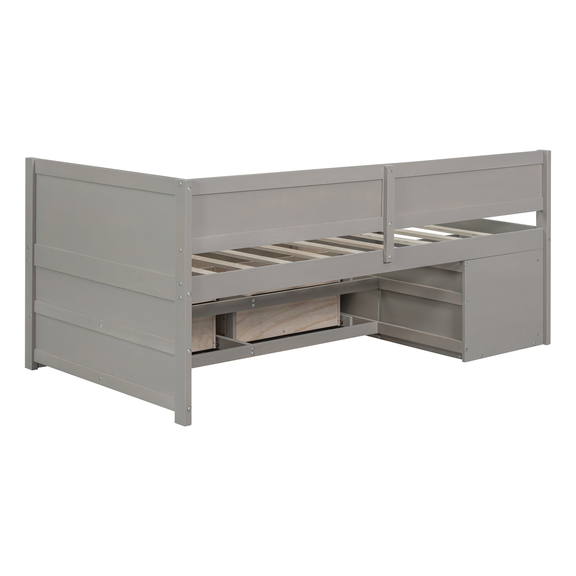 Twin Size Daybed With Drawers And Shelves, Gray Gray Solid Wood