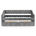 Twin Size Daybed With Drawers Upholstered Tufted Sofa Bed, With Button On Back And Copper Nail On Waved Shape Arms, Grey 81.5''X4''X30.5'' Grey Polyester
