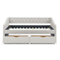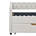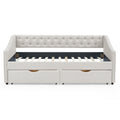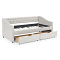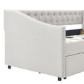 Twin Size Daybed With Drawers Upholstered Tufted Sofa Bed, With Button On Back And Copper Nail On Waved Shape Arms, Beige 81.5''X41''X30.5'' Beige Linen