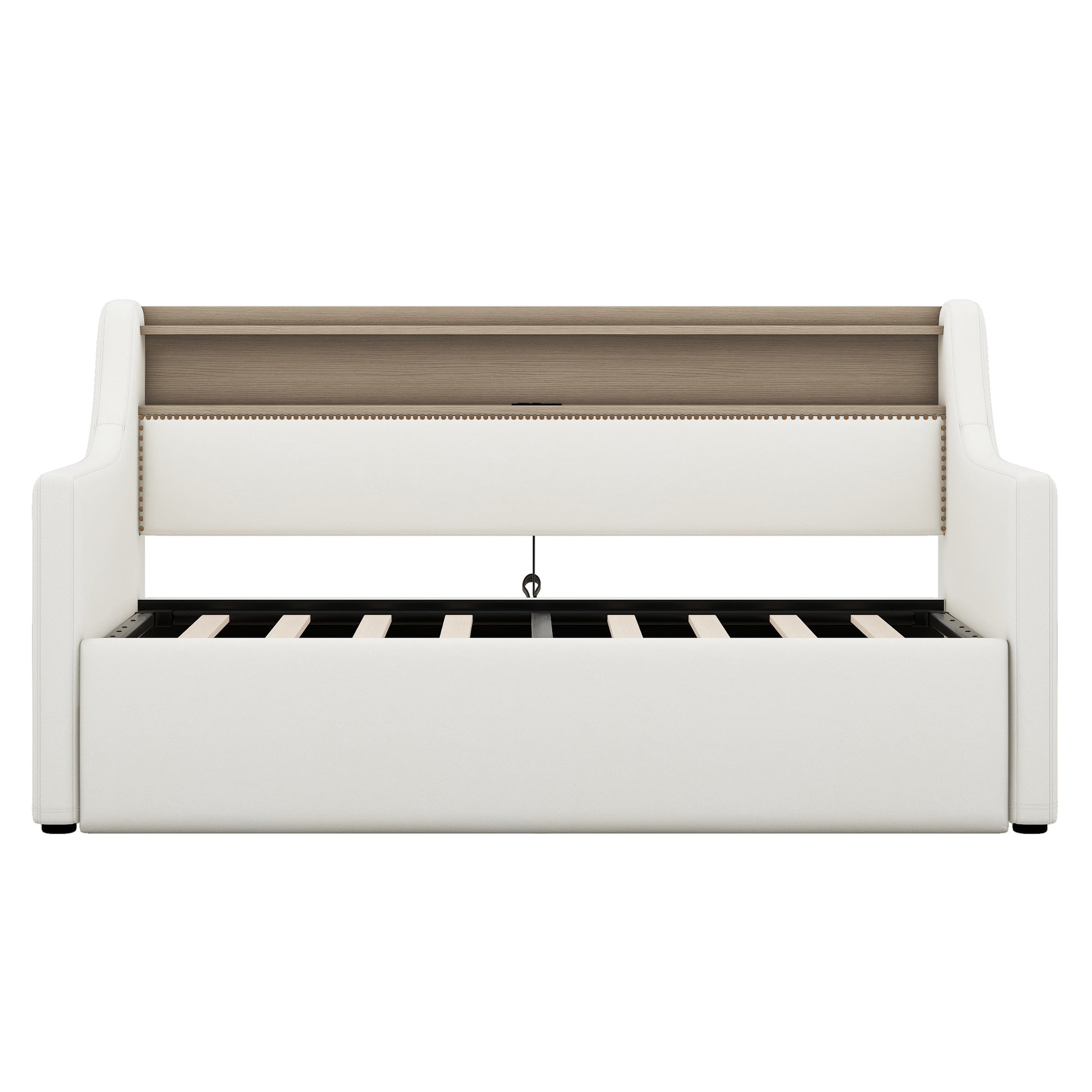 Twin Size Daybed With Hydraulic Storage, Upholstered Daybed With Lift Up Storage, Twin Leather Daybed With Charging Station And Led Lights,White Expect Arrival Date Feb.13Rd Twin White Pu Leather