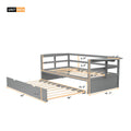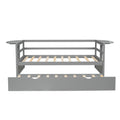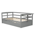 Twin Size Daybed With Trundle And Foldable Shelves On Both Sides,Gray Gray Pine