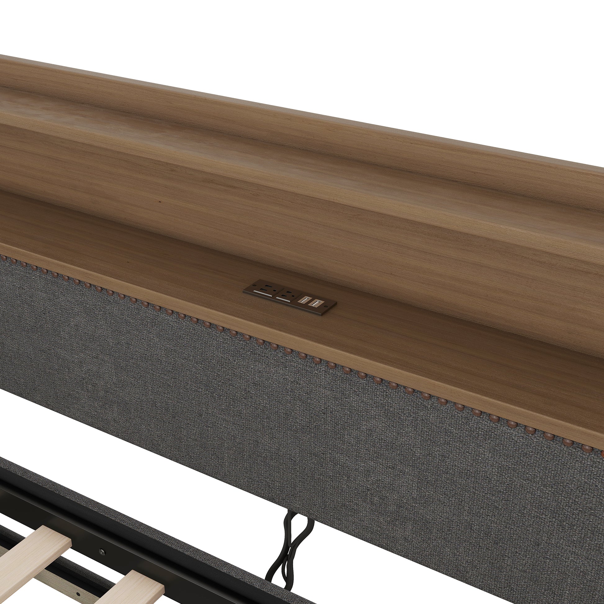 Twin Size Daybed With Trundle Bed, Upholstered Daybed With Charging Station And Led Lights, Gray Twin Gray Linen