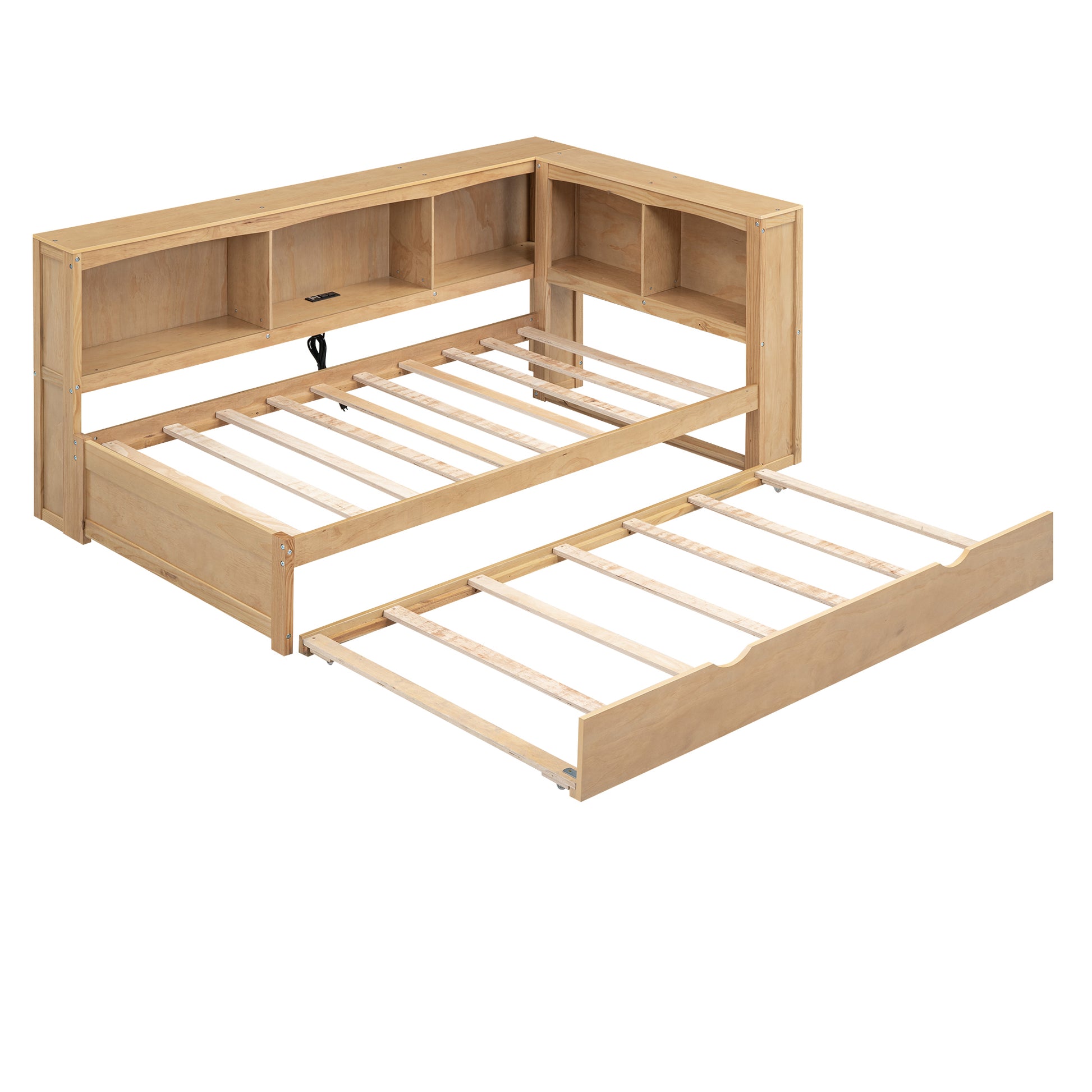 Twin Size Daybed With Trundle, Storage Cabinets And Usb Ports, Wood Color Box Spring Not Required Twin White Wood Solid Wood Mdf