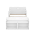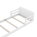 Twin Size Floor Bed With Storage Footboard And Guardrail, White Box Spring Not Required Twin White Wood Bedroom Bed Frame Solid Wood Mdf