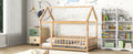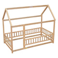 Twin Size Floor Wooden Bed With House Roof Frame, Fence Guardrails, Old Sku:W504105240 Twin Natural Pine