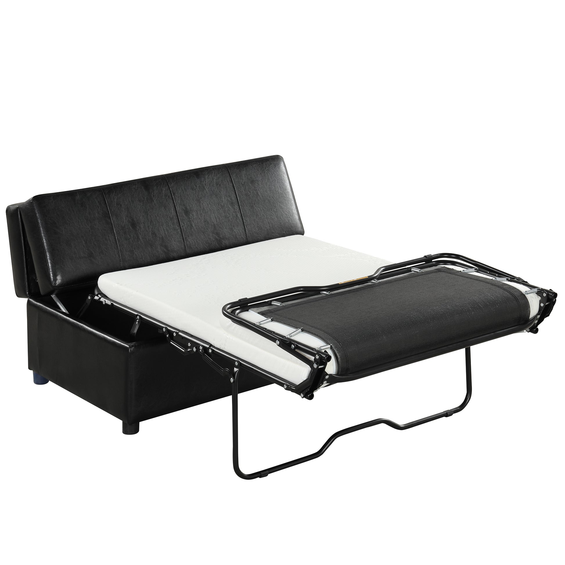 Twin Size Folding Ottoman Sleeper Bed With Mattress Convertible Guest Bed Black Black Pu Foam Pu 1 Seat