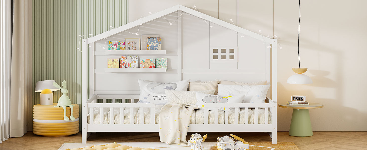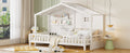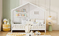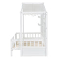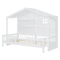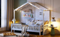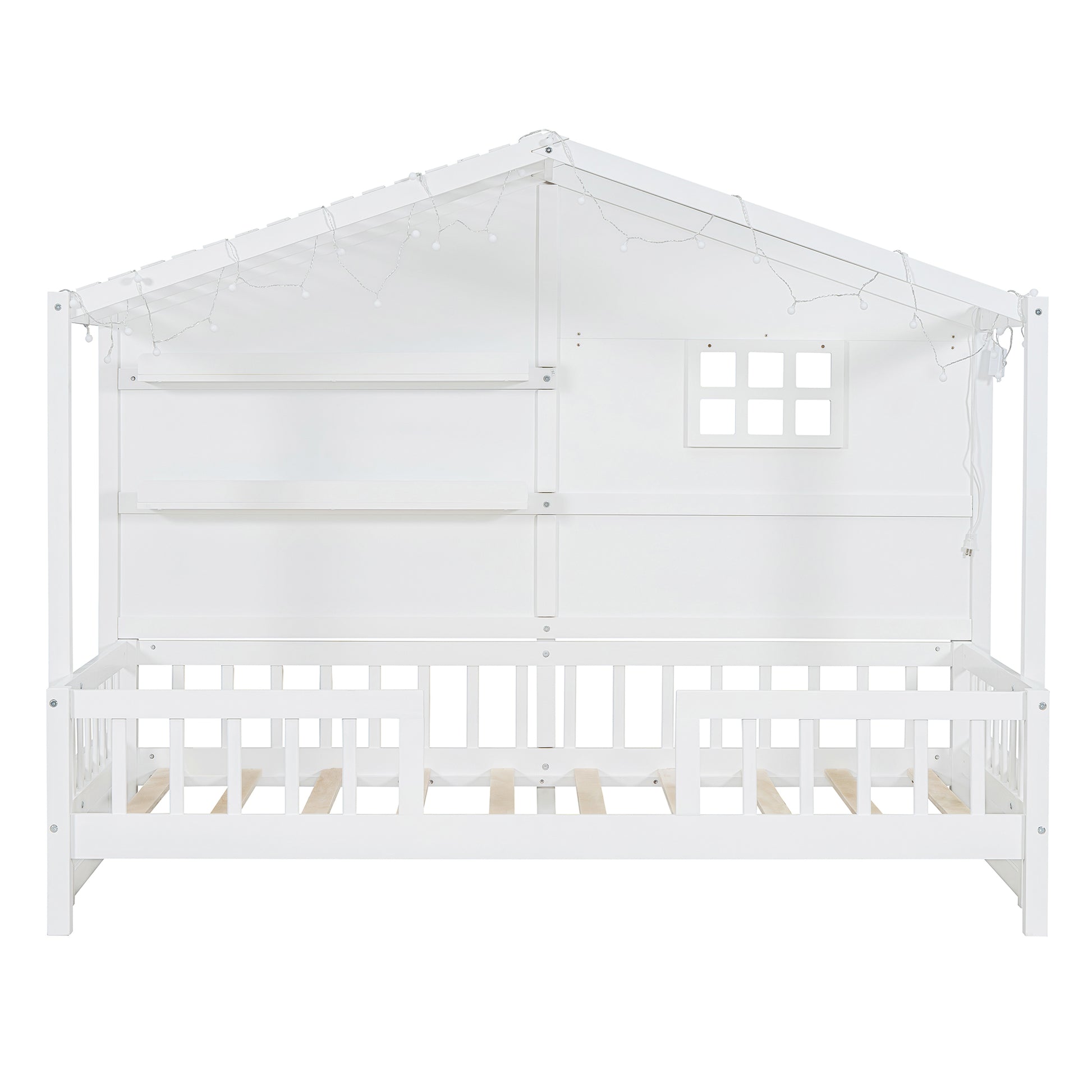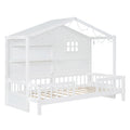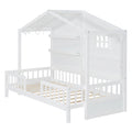 Twin Size House Bed With Shelves, House Bed With Window And Sparkling Light Strip On The Roof, White Twin White Solid Wood Mdf