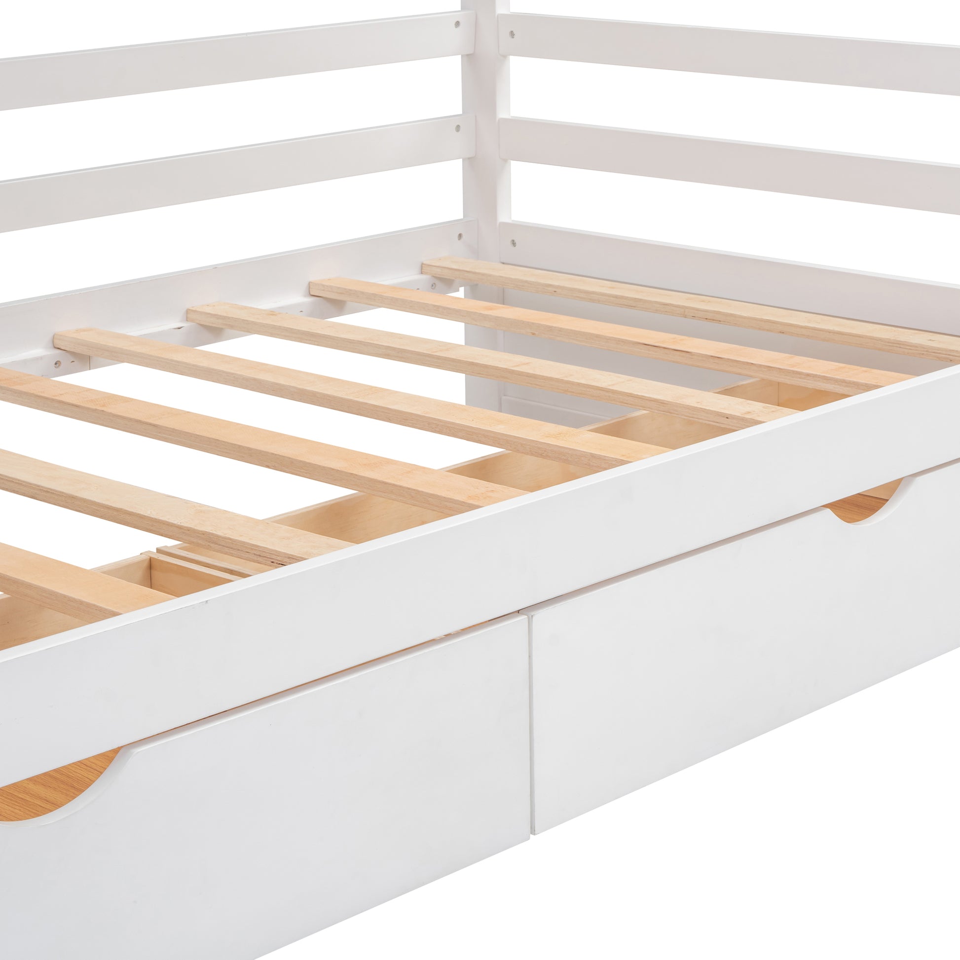 Twin Size House Bed With Two Drawers And Wardrobe,White Twin White Solid Wood
