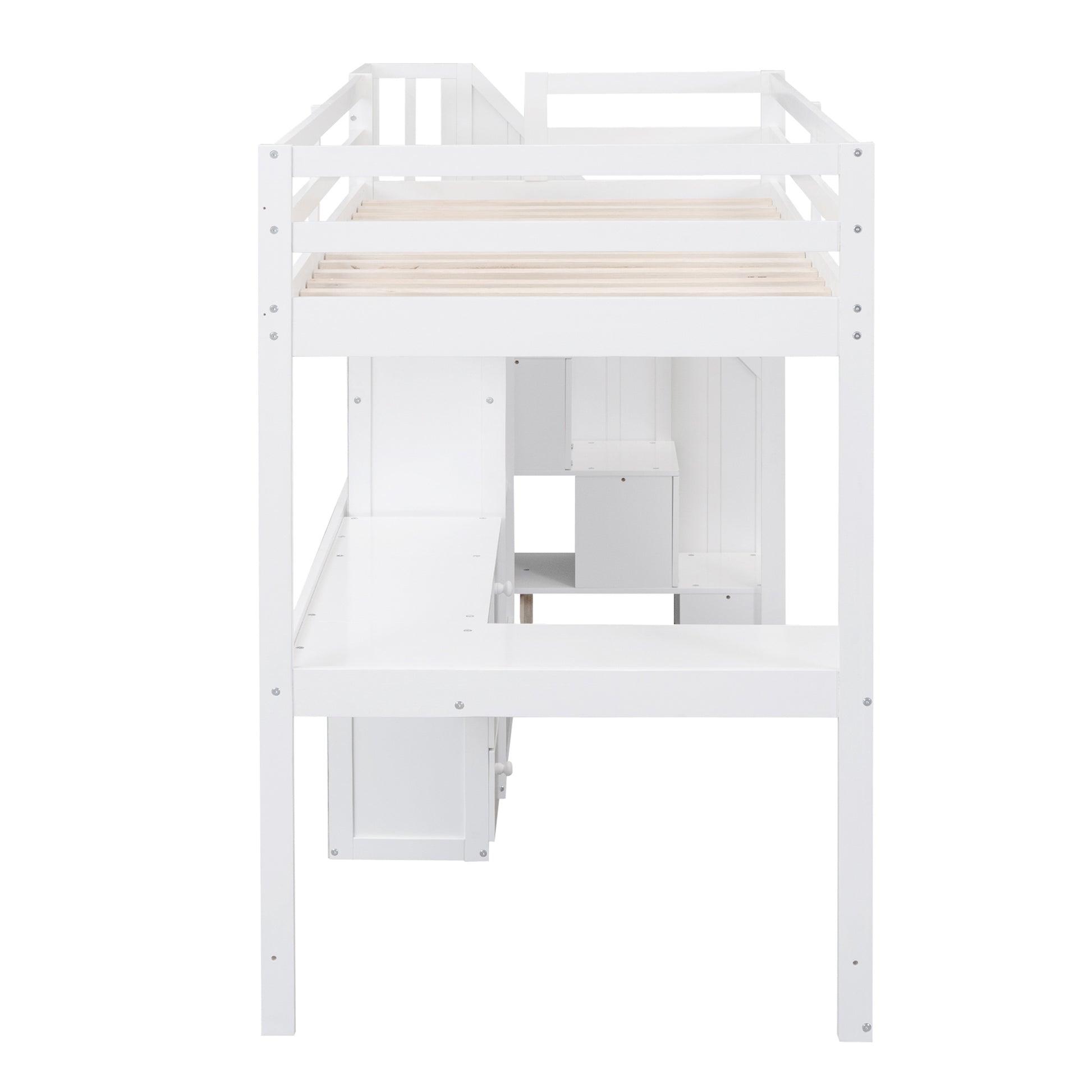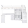 Twin Size Loft Bed With L Shaped Desk And Drawers, Cabinet And Storage Staircase, White White Pine