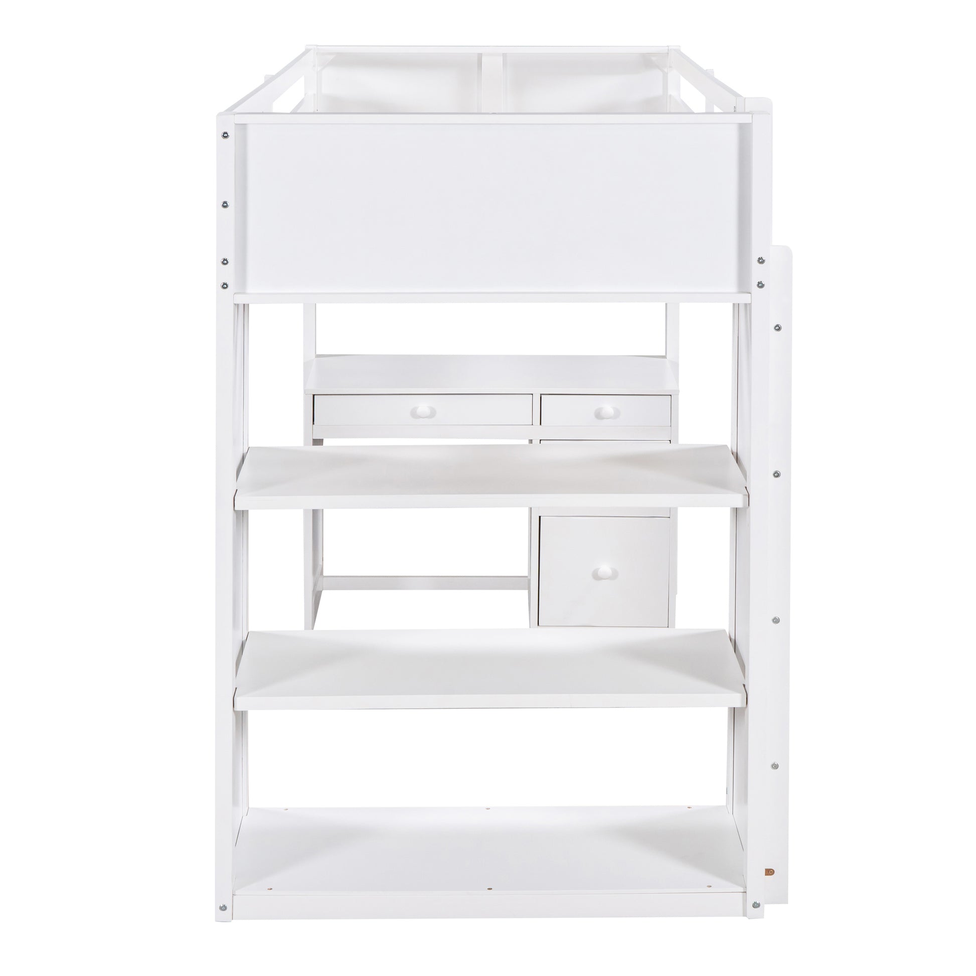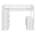 Twin Size Loft Bed With Ladder, Shelves, And Desk, White Gray Solid Wood Mdf