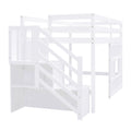 Twin Size Loft Bed With Storage Staircase And Window, White Box Spring Not Required Twin White Wood Bedroom Solid Wood Mdf