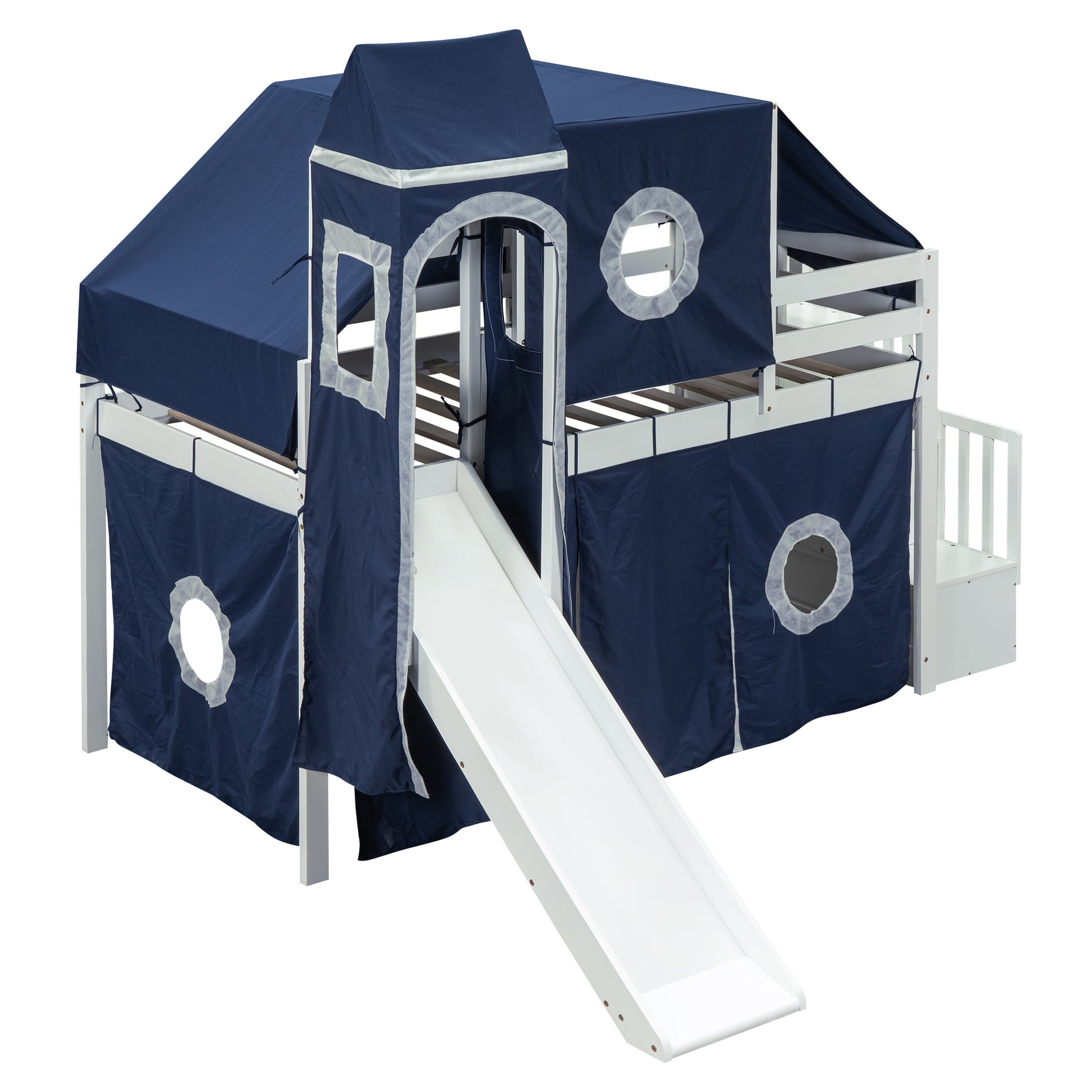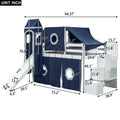Twin Size Loft Bed With Tent And Tower Blue Blue Solid Wood