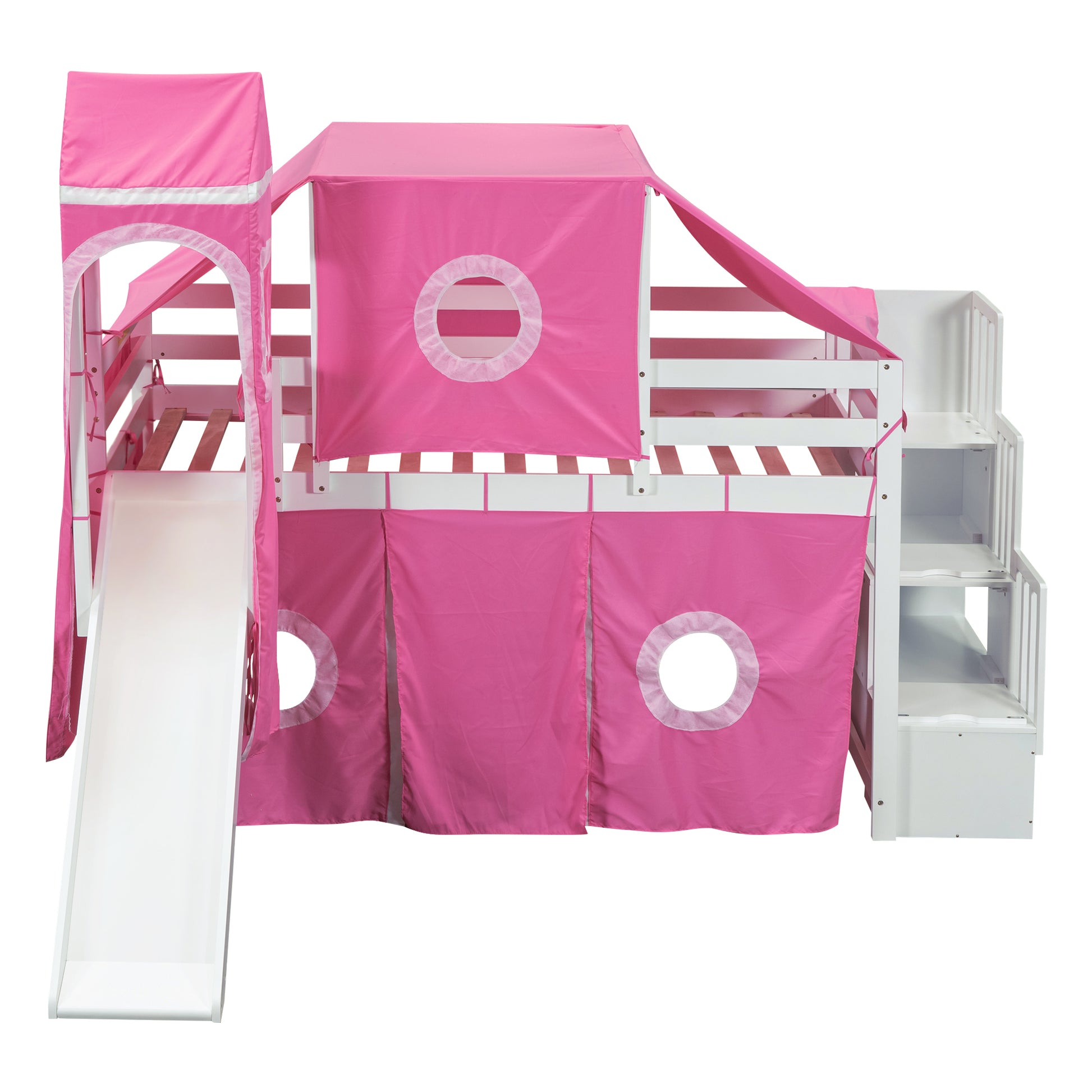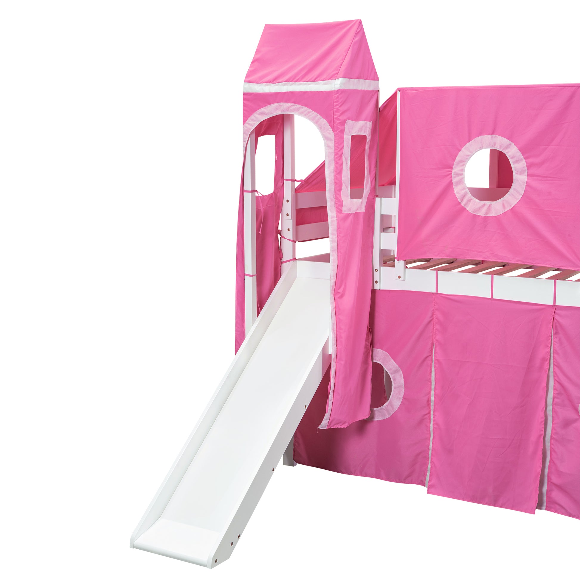 Twin Size Loft Bed With Tent And Tower Pink Pink Solid Wood