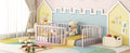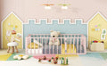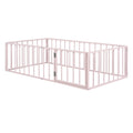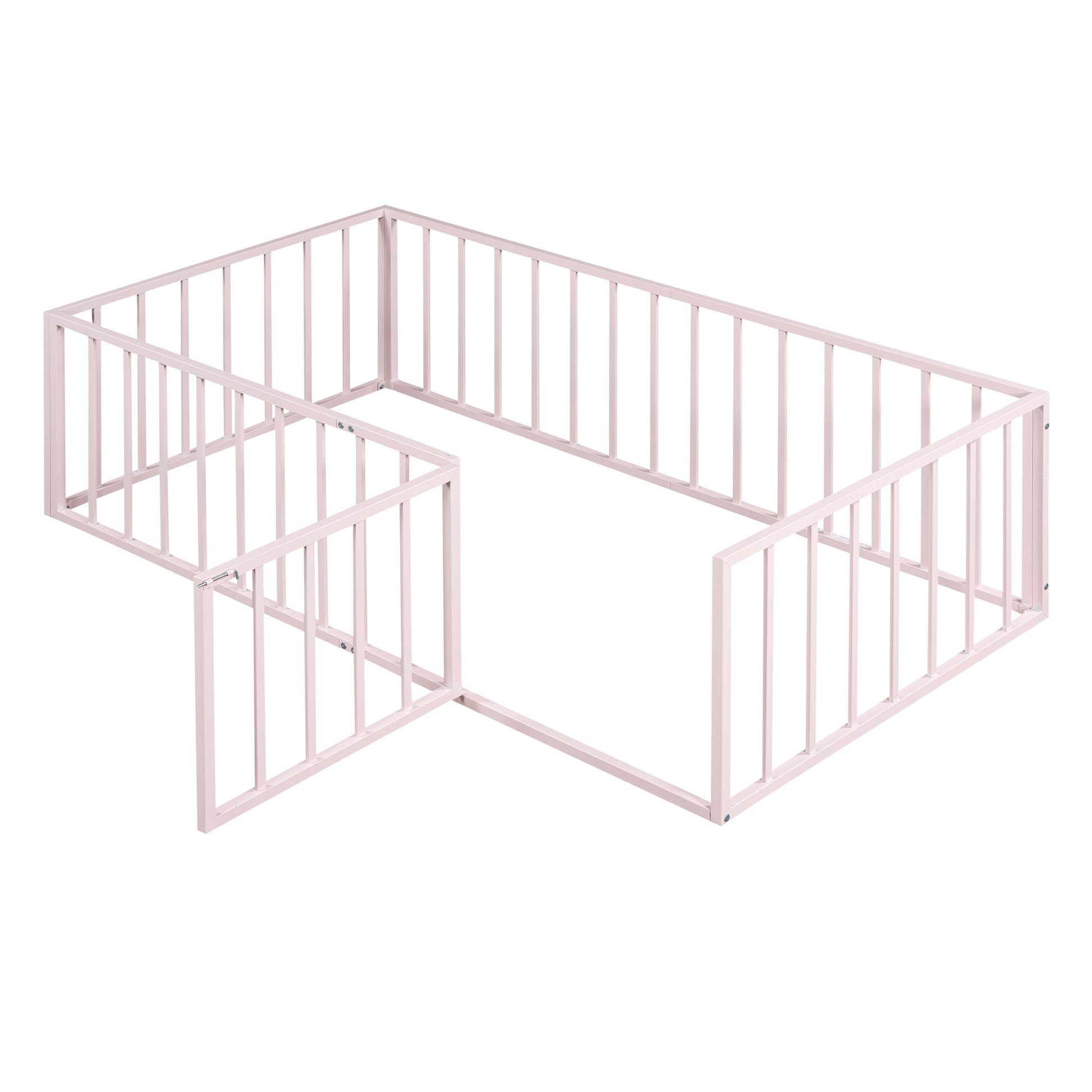 Twin Size Metal Floor Bed Frame With Fence And Door, Pink Pink Metal