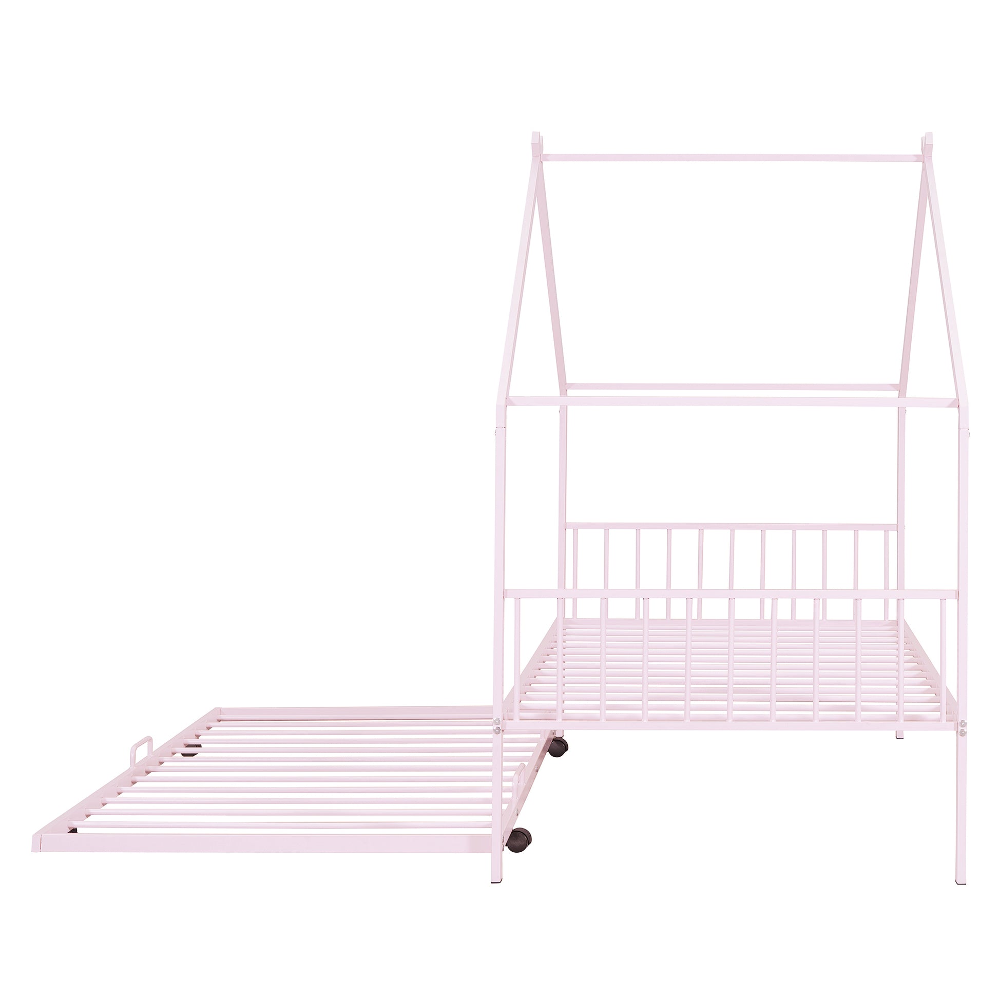 Twin Size Metal House Bed With Twin Size Trundle, Pink Twin Pink Metal