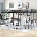 Twin Size Metal Loft Bed With Two Built In Desks,Black Twin Black Metal