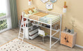Twin Size Metal&Wood Loft Bed With Desk And Shelves, Two Built In Drawers, White White Metal & Wood