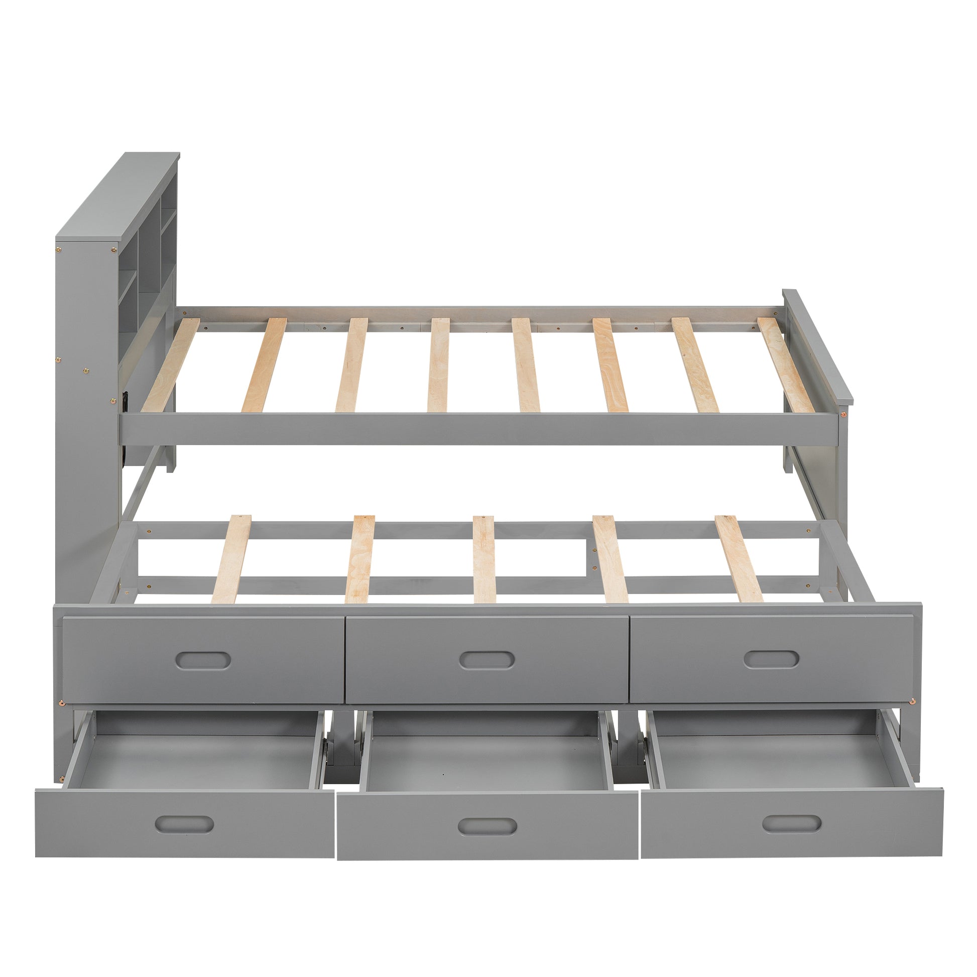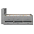 Twin Size Platform Bed With Storage Headboard, Usb, Twin Size Trundle And 3 Drawers, Gray Box Spring Not Required Twin Gray Wood Bedroom Bed Frame Solid Wood Mdf