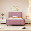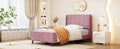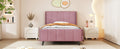 Twin Size Upholstered Platform Bed, Velvet, Pink Pink Upholstered