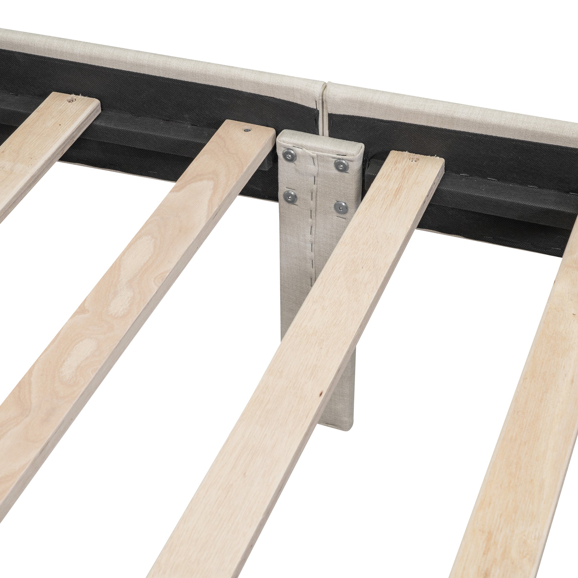 Twin Size Upholstered Platform Bed With 2 Drawers, Beige Beige Upholstered
