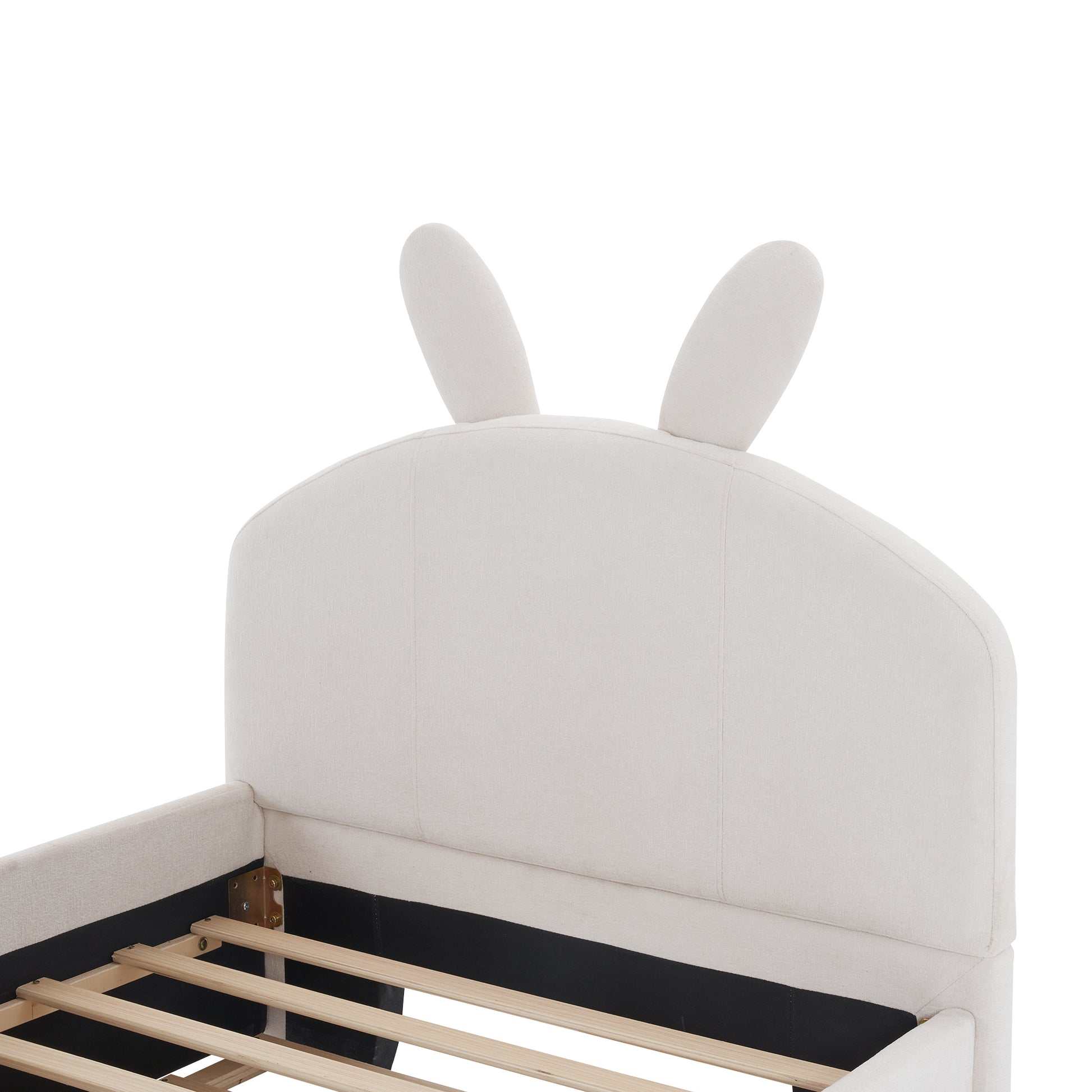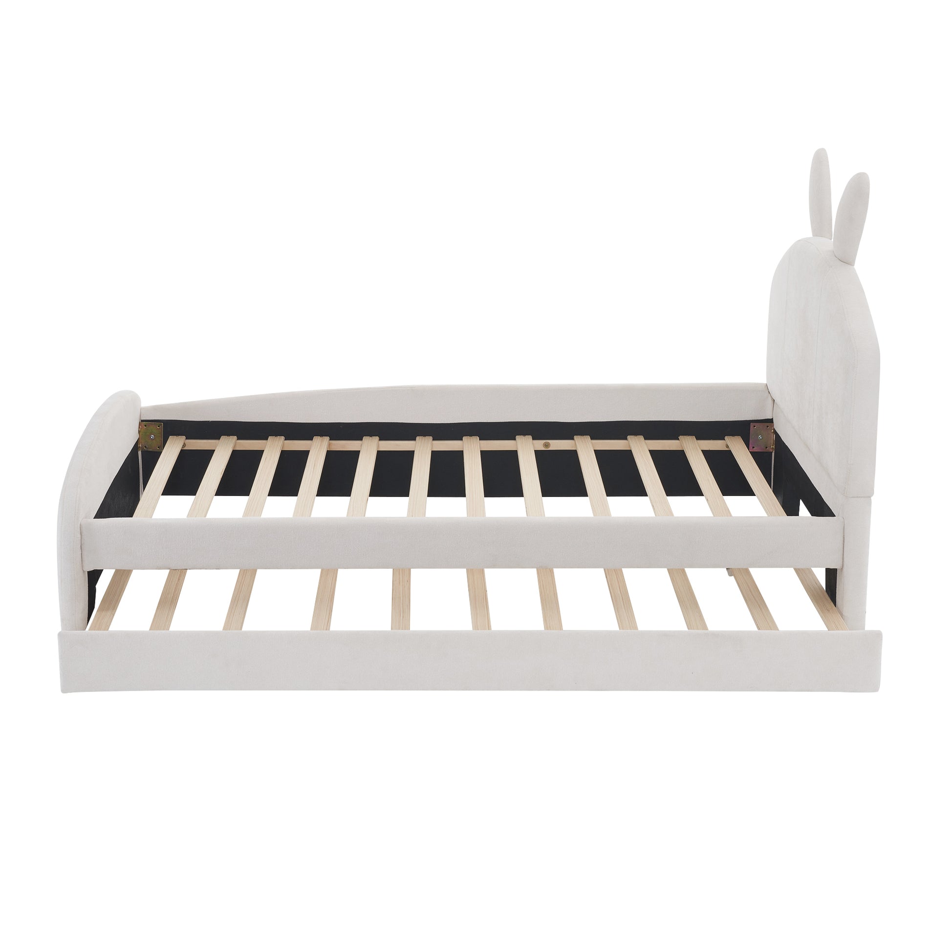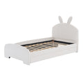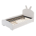 Twin Size Upholstered Platform Bed With Cartoon Ears Shaped Headboard And Trundle, White Box Spring Not Required Twin White Wood Bedroom Chenille Upholstered