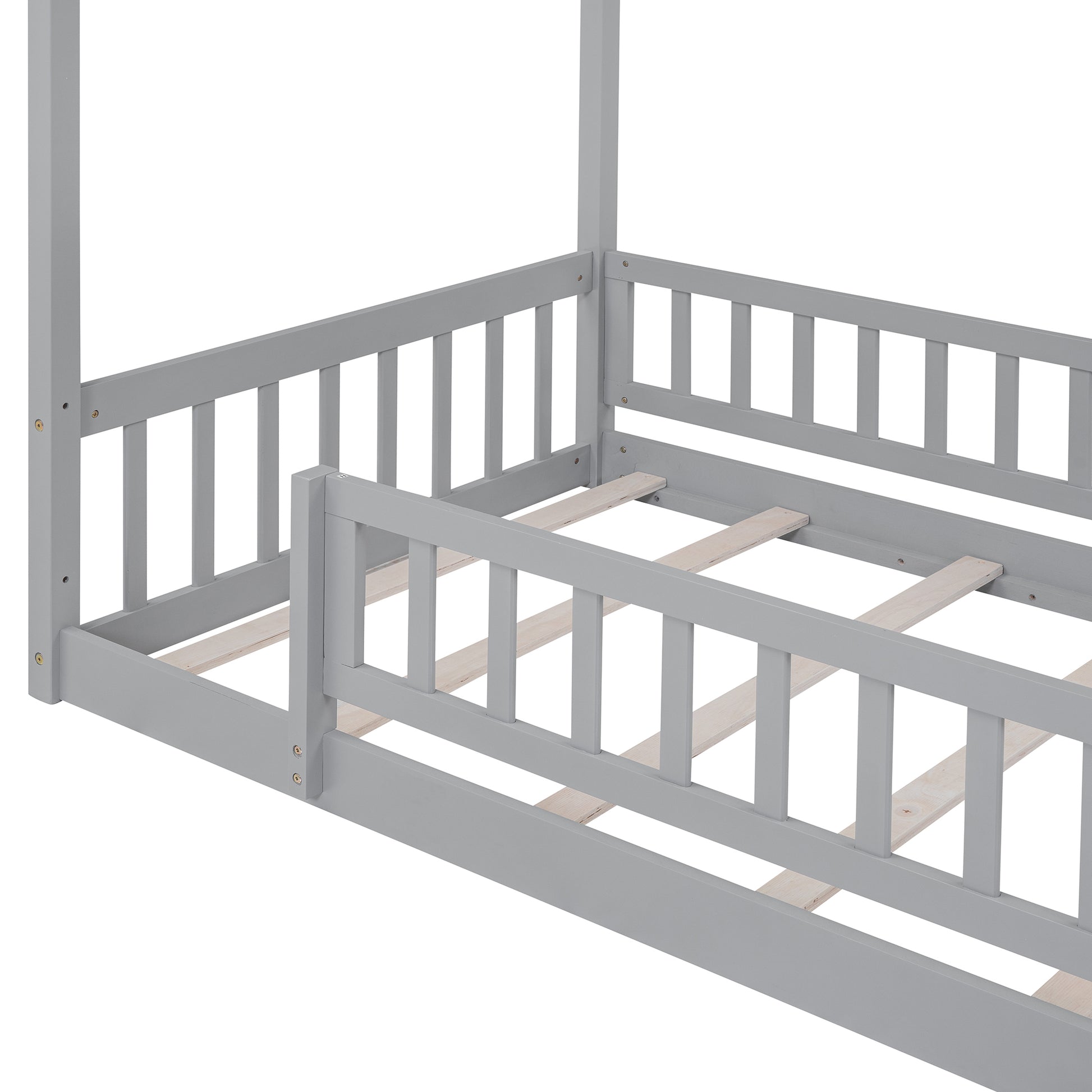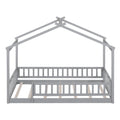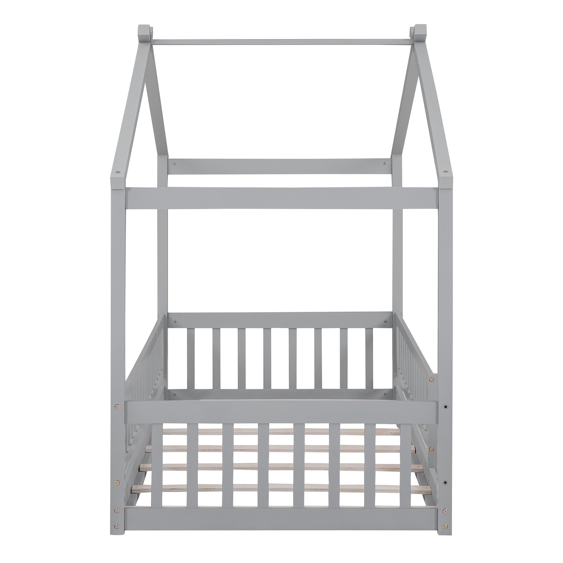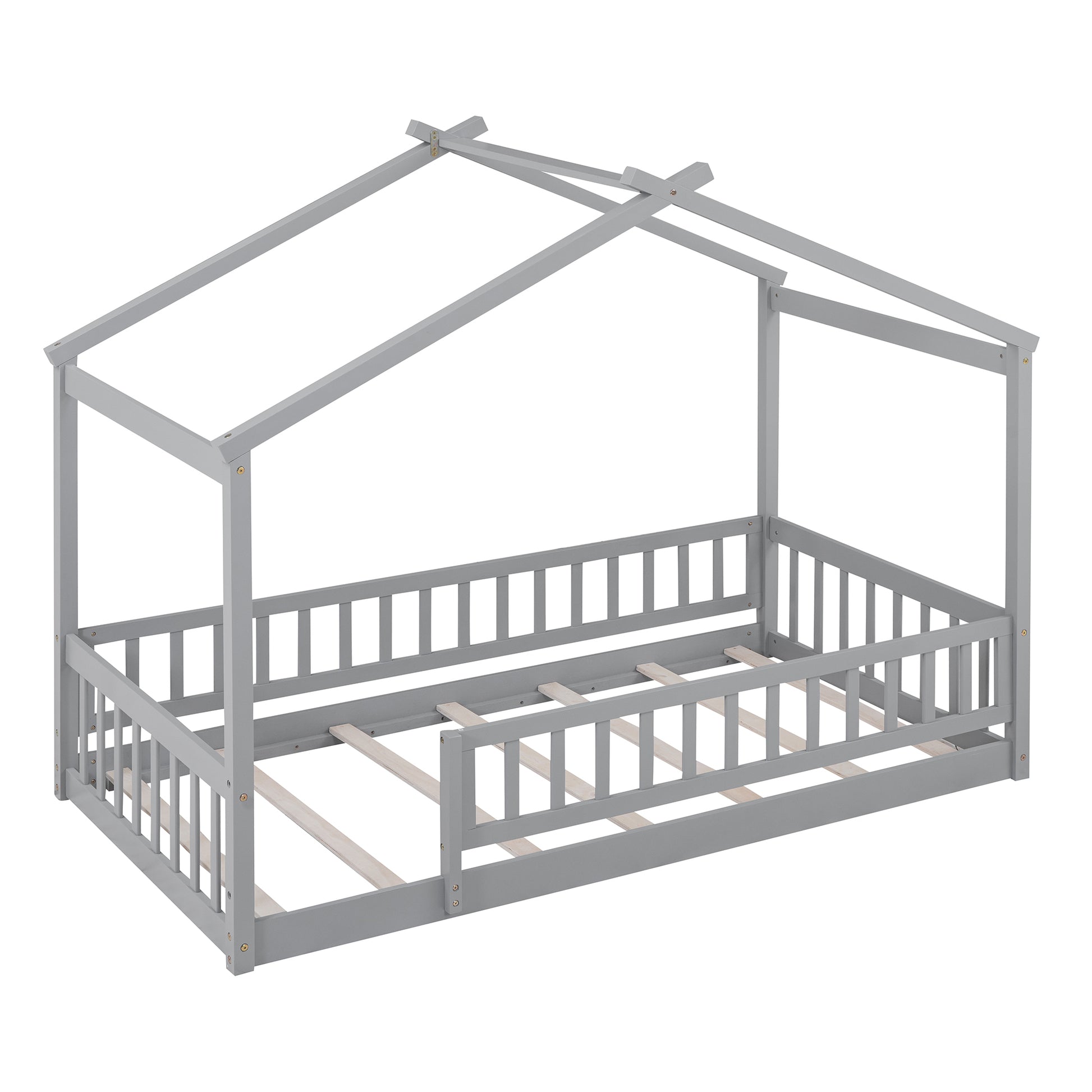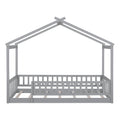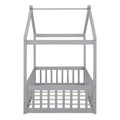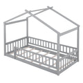 Twin Size Wood Bed House Bed Frame With Fence, For Kids, Teens, Girls, Boys, Gray Box Spring Not Required Twin Gray Wood Gray Pine Bed Frame Wood