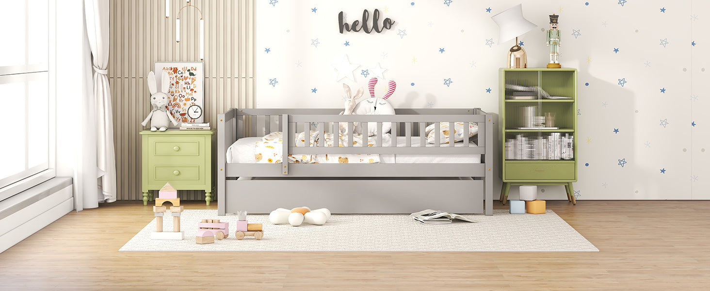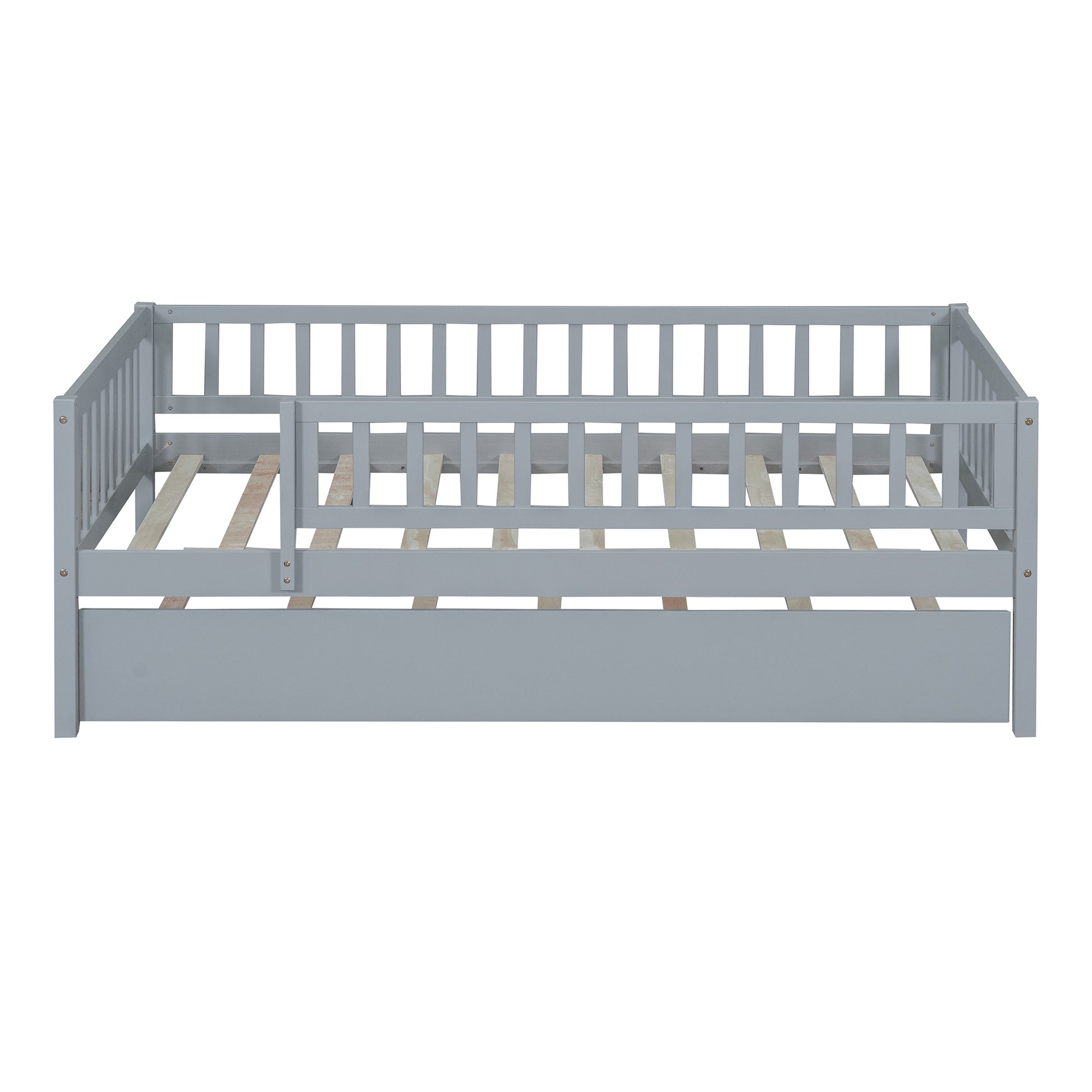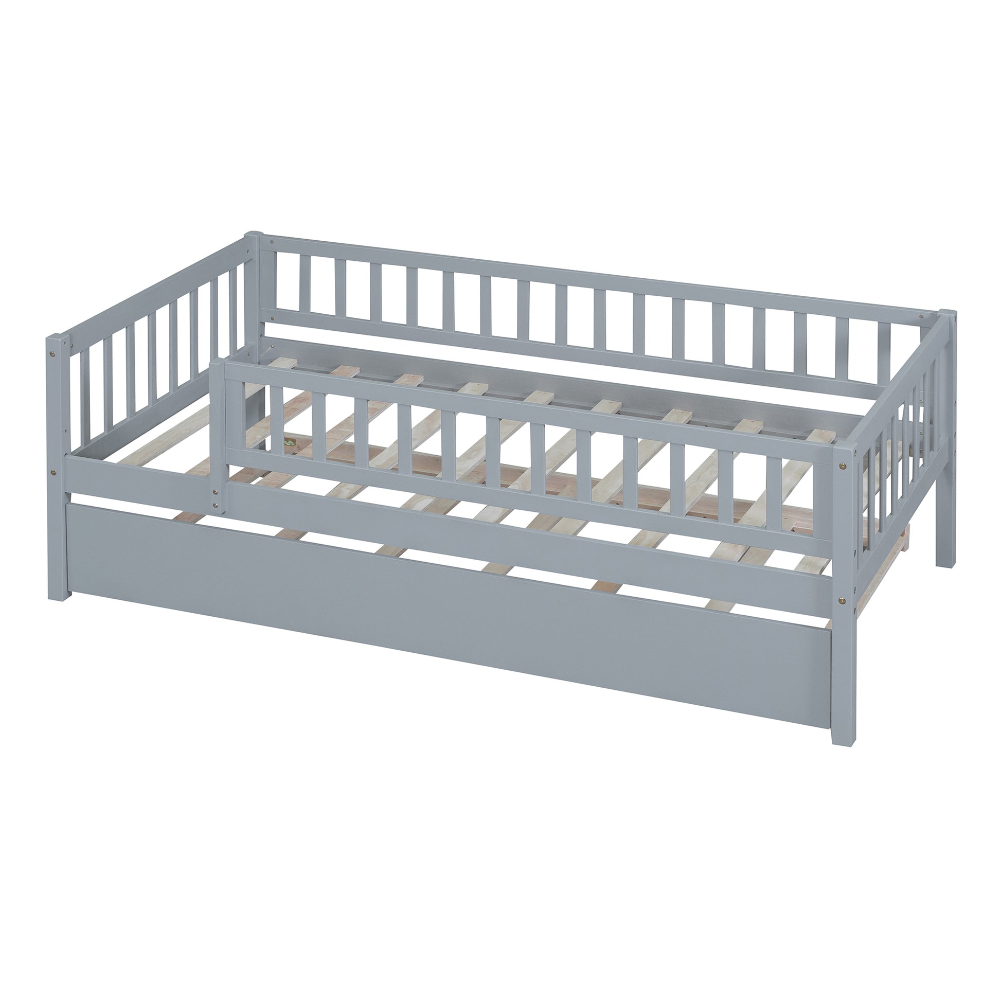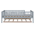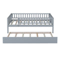 Twin Size Wood Daybed With Trundle And Fence Guardrails, Gray Twin Gray Solid Wood Mdf