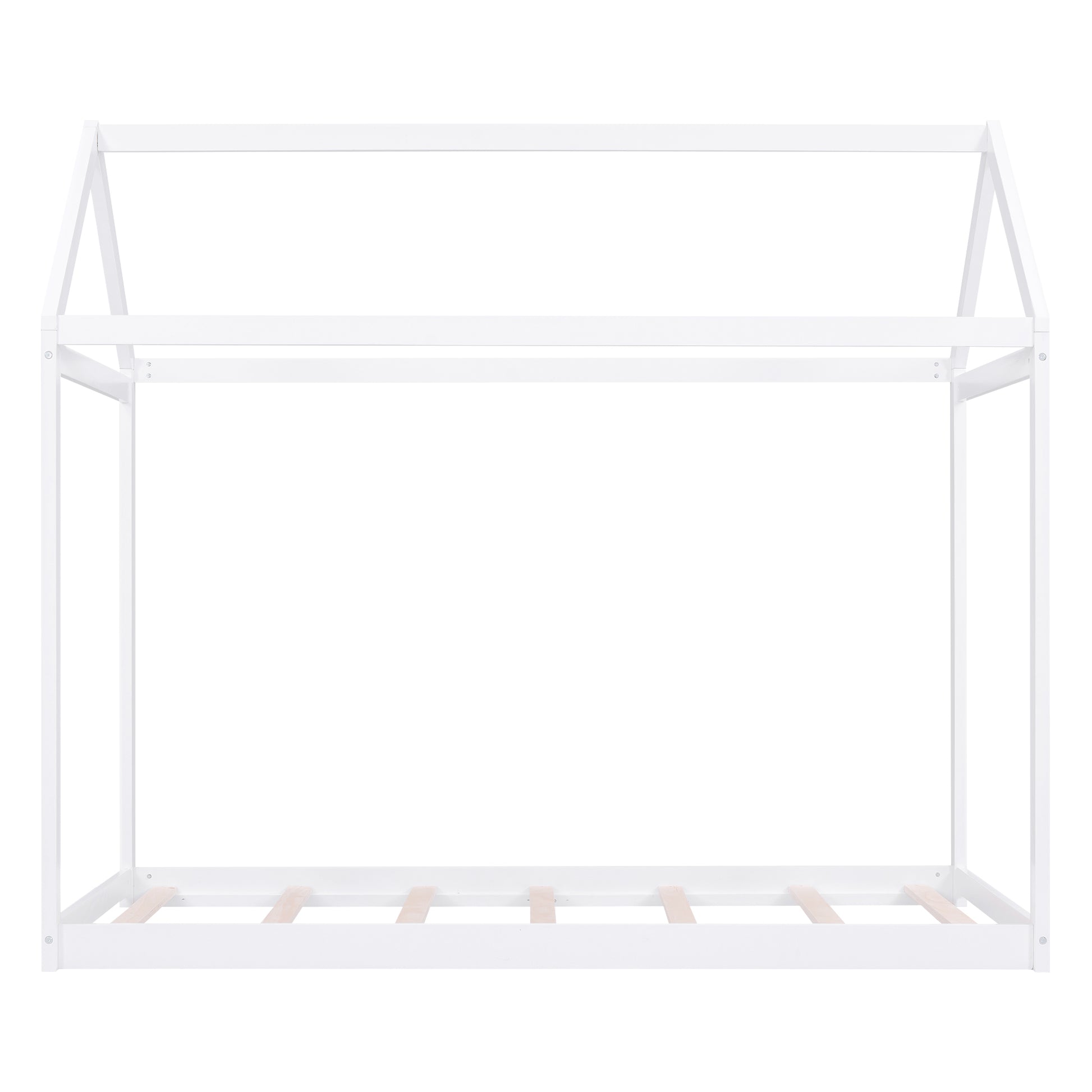 Twin Size Wooden House Bed, White Box Spring Not Required Twin White Wood Bedroom Pine
