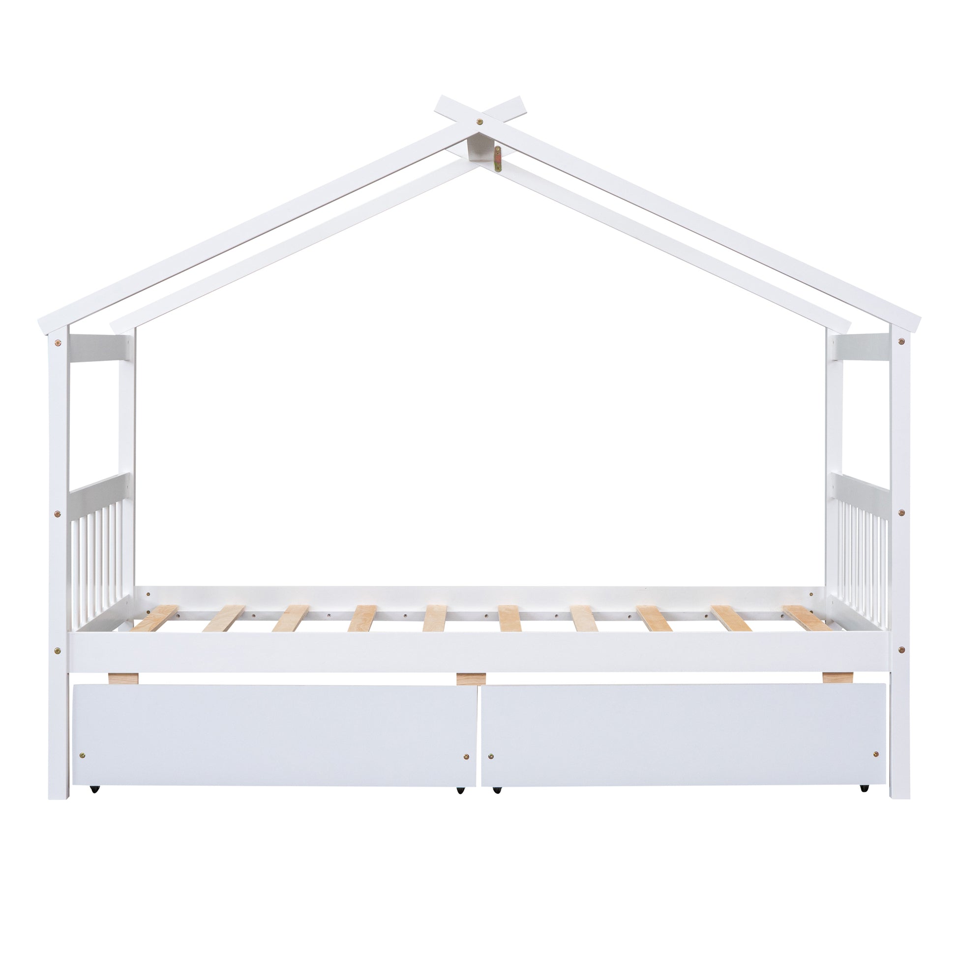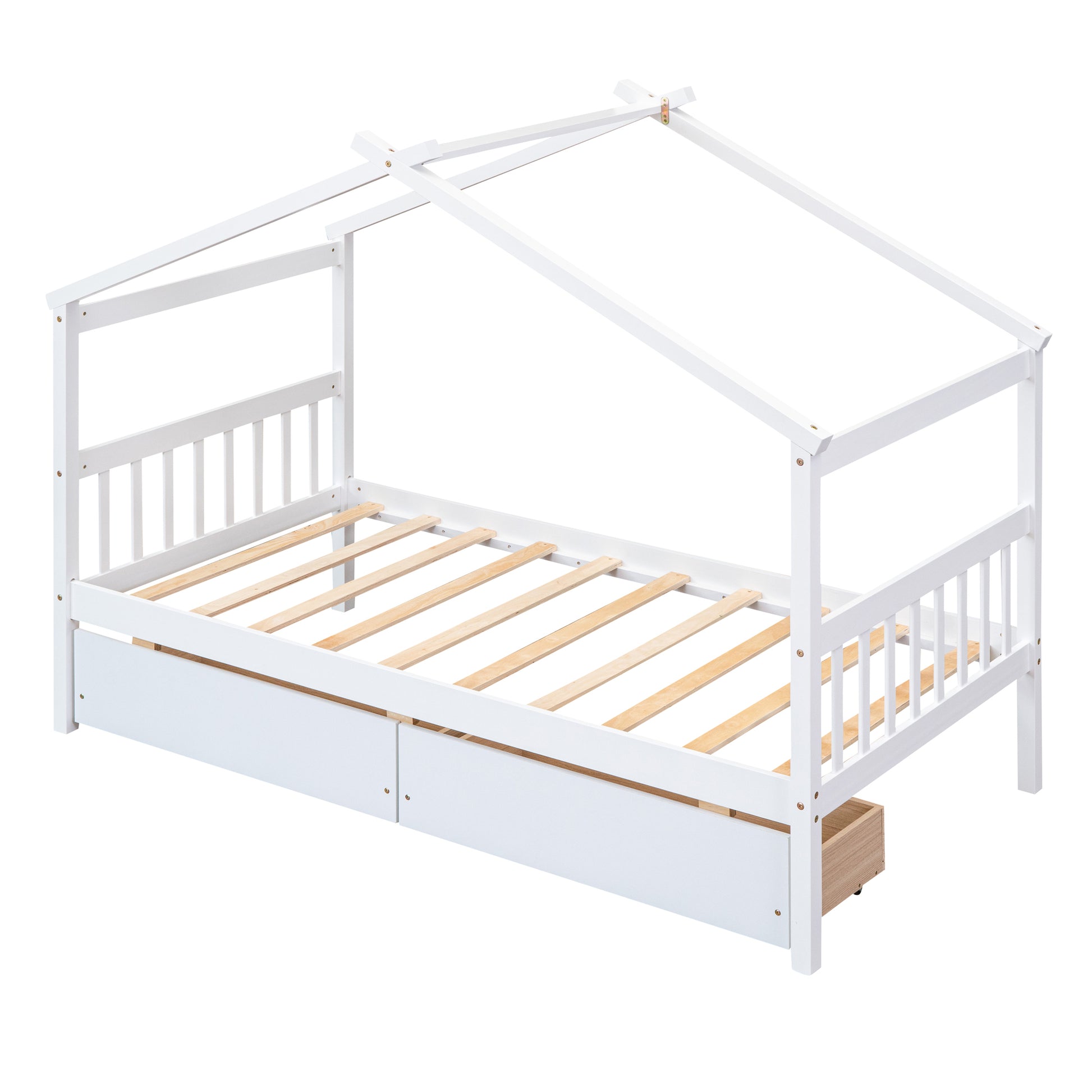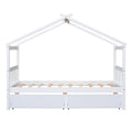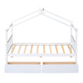 Twin Size Wooden House Bed With Drawers, White White Solid Wood Mdf