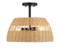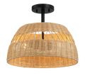 Twinkle Double Lights Semi Flush With Rattan Shade Black Metal Finish For Farmhouse Style Black,Rattan Metal,Rattan