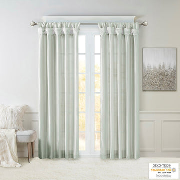 Twist Tab Lined Window Curtain Panel Green Polyester