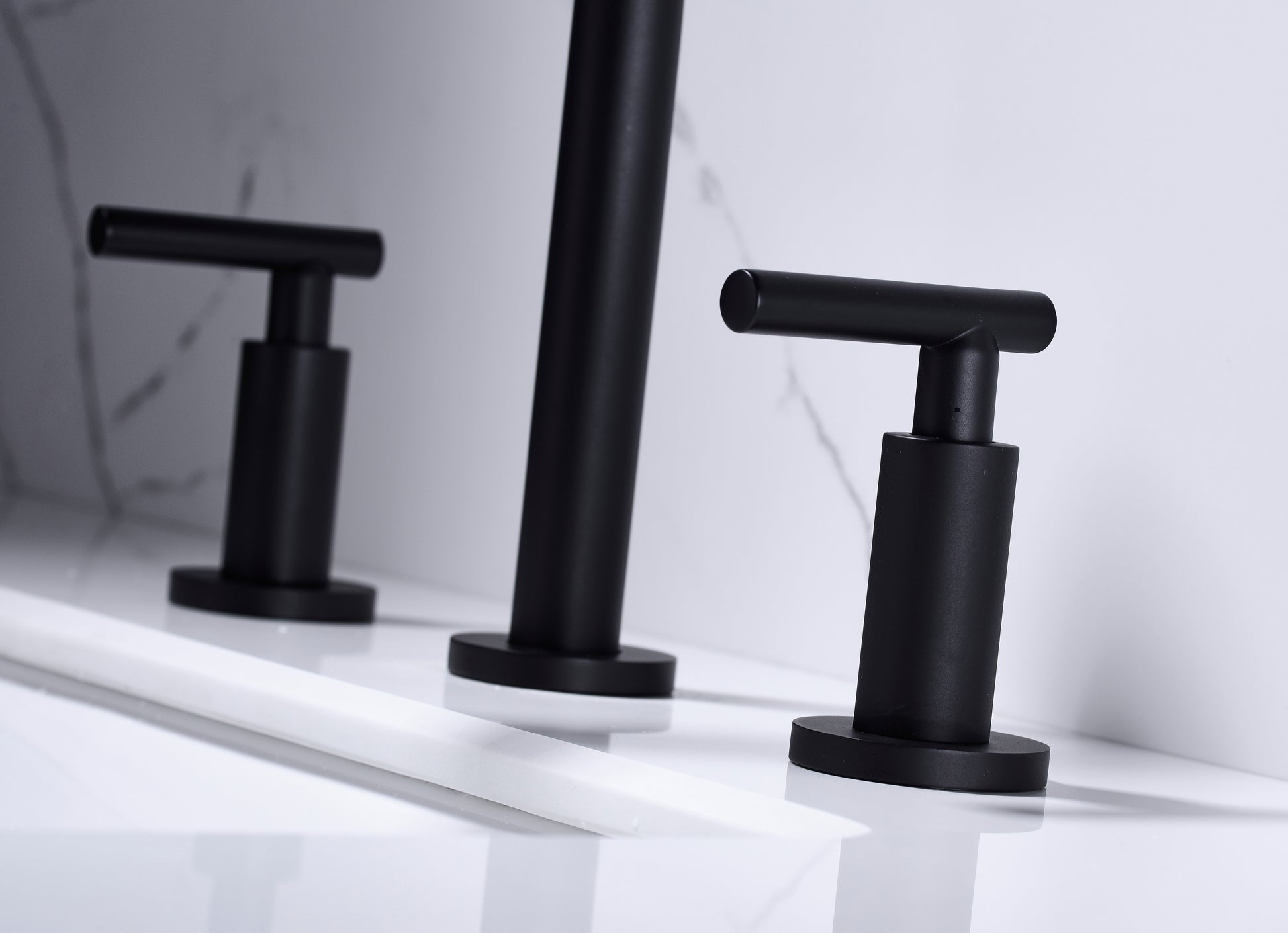 Two Handle High Arc Widespread Bathroom Sink Faucet 3 Hole Matte Black Stainless Steel