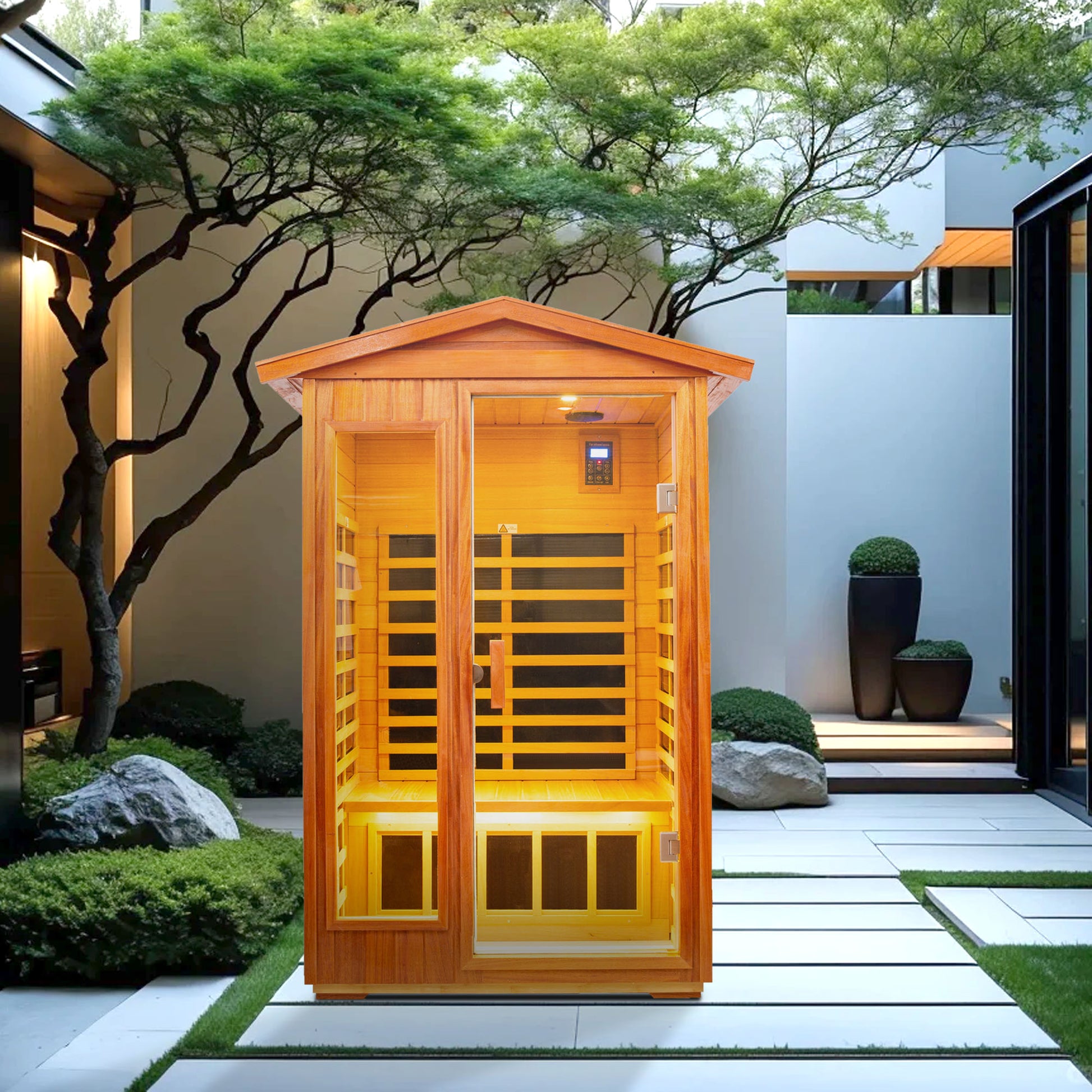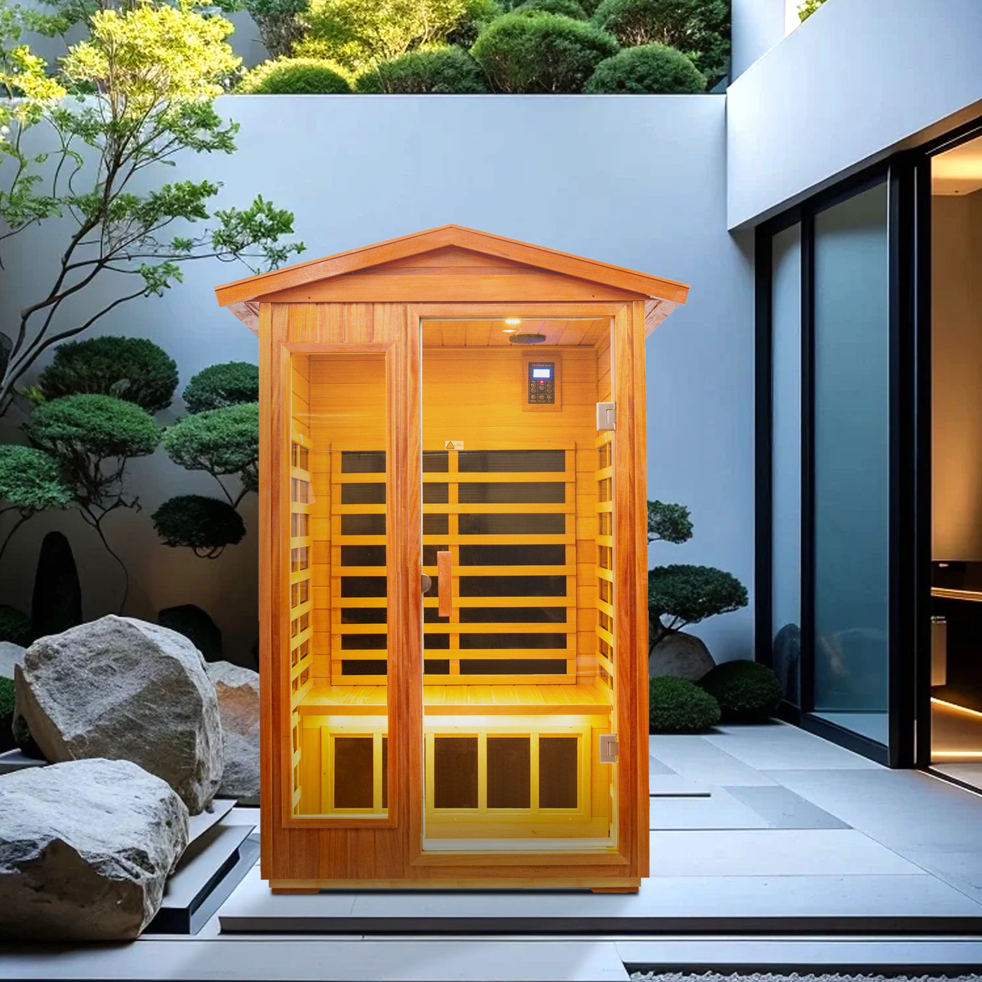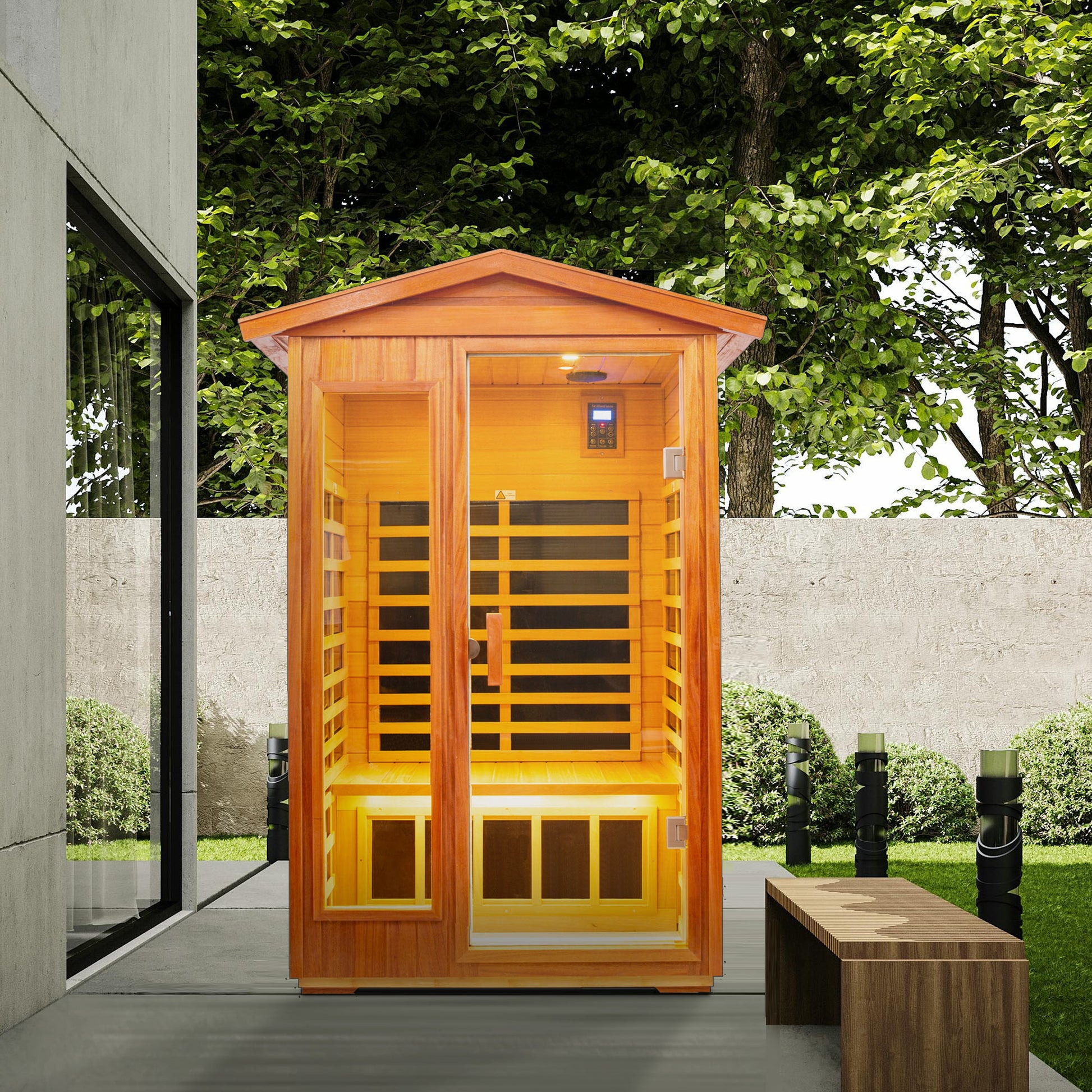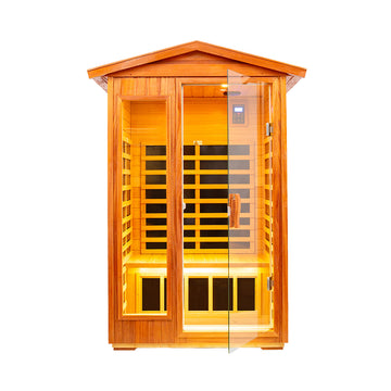 Two Person Outdoor Kaya Wood Far Infrared Sauna Room Natural Wood Metal & Wood