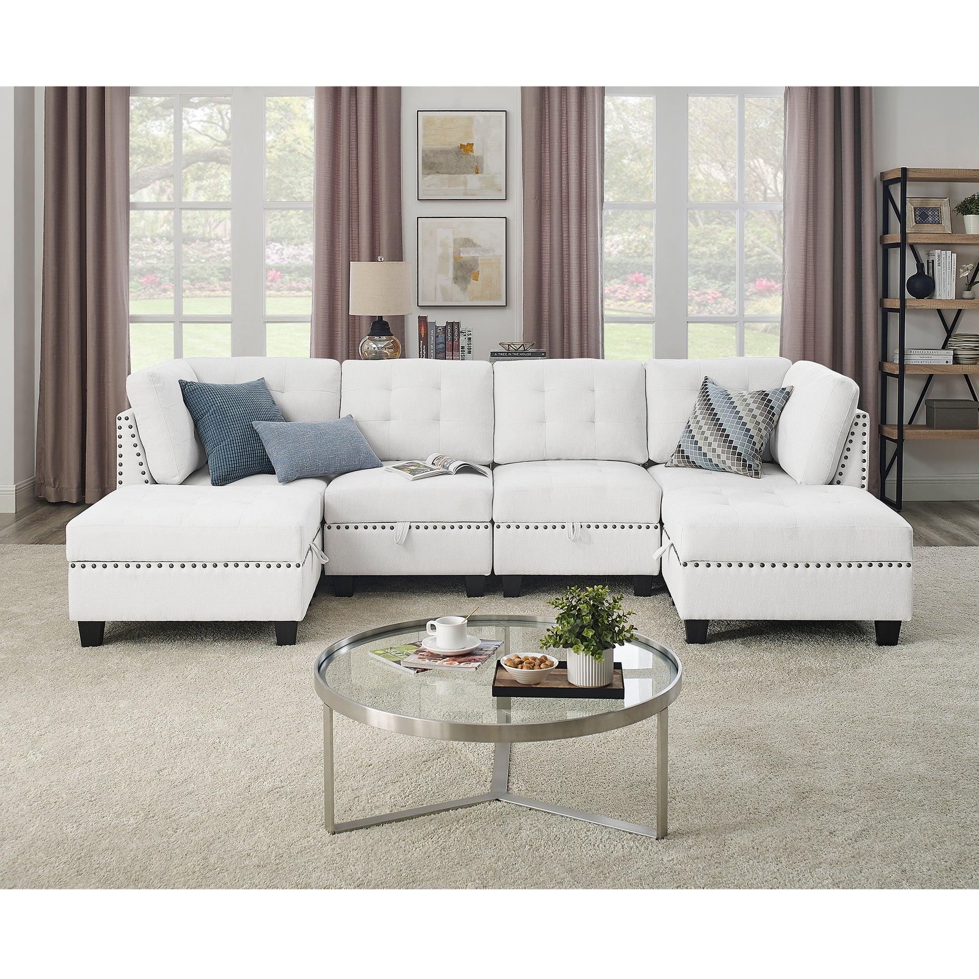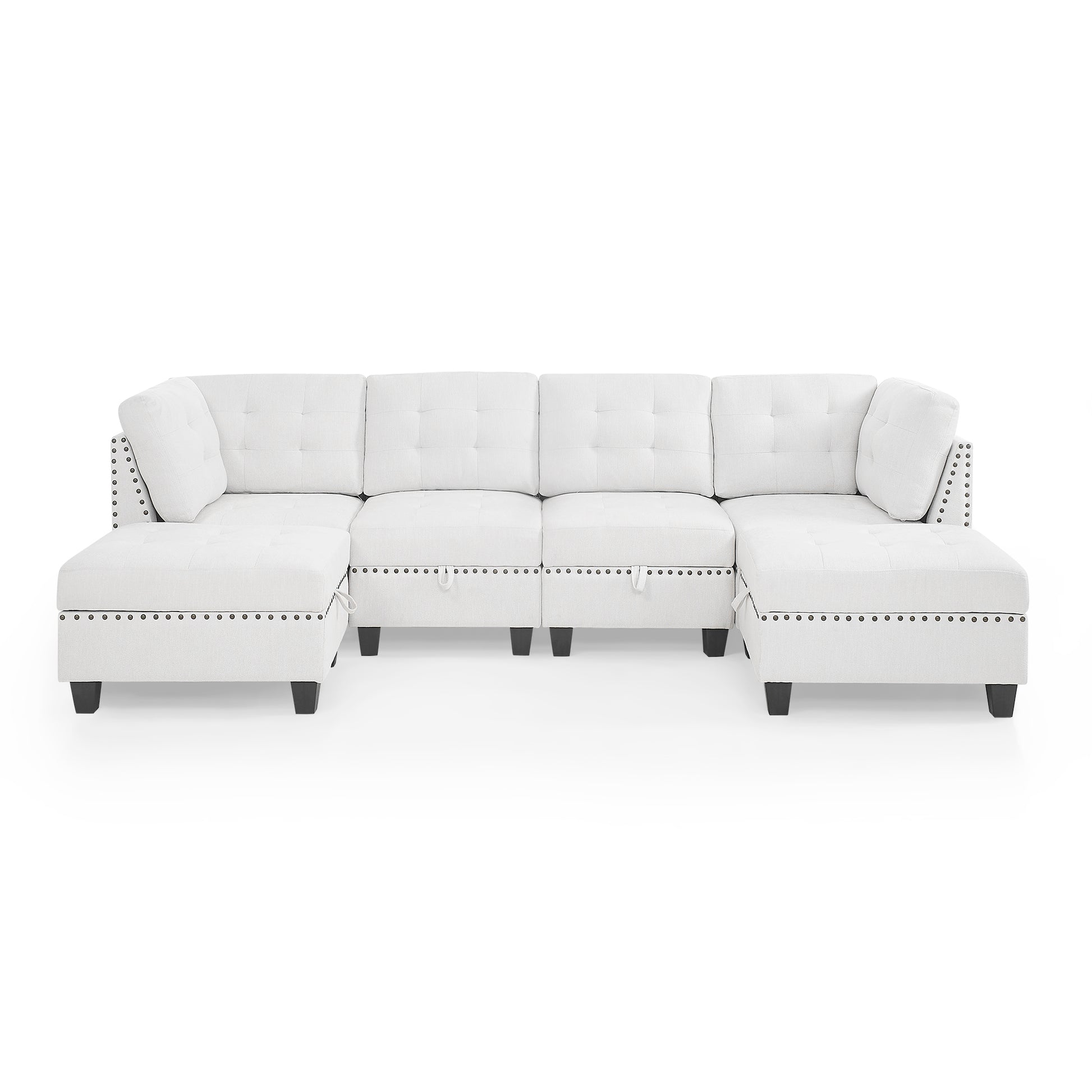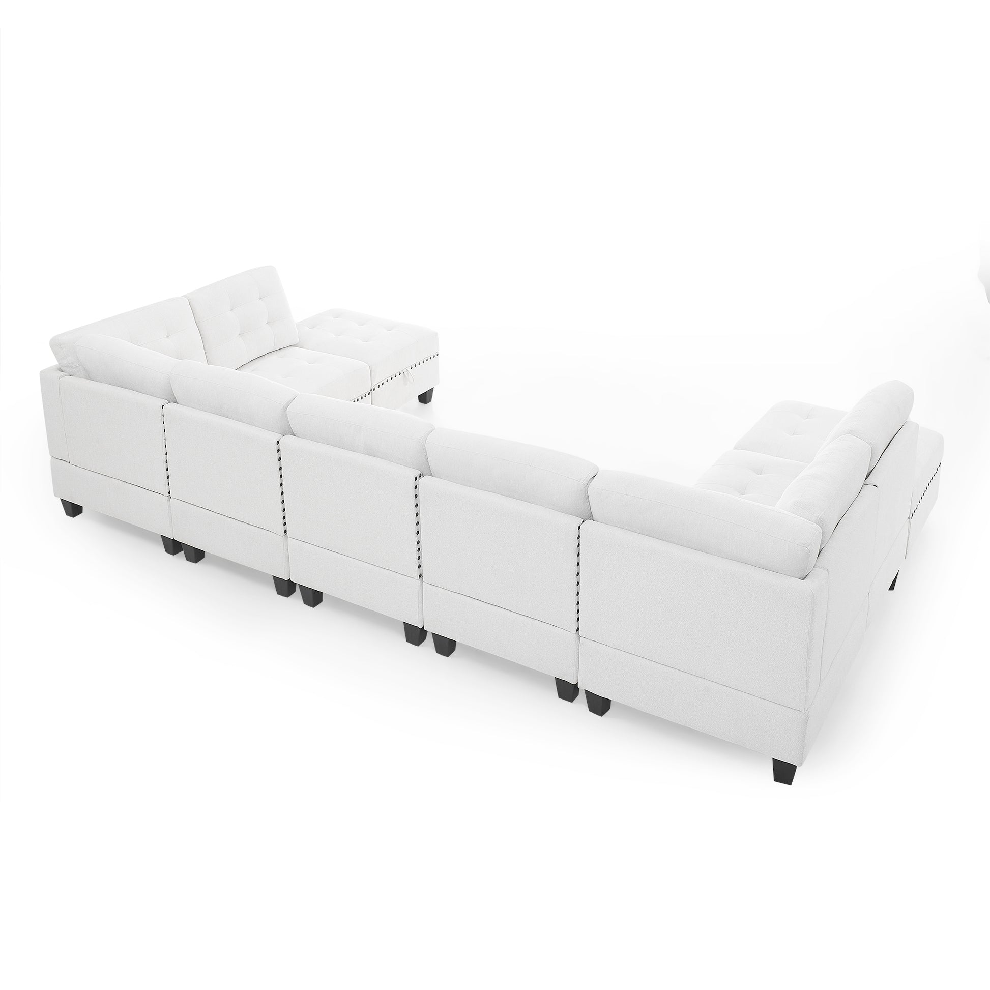 U Shape Modular Sectional Sofa,Diy Combination,Includes Two Single Chair ,Two Corner And Two Ottoman,Ivory Chenille Ivory Chenille