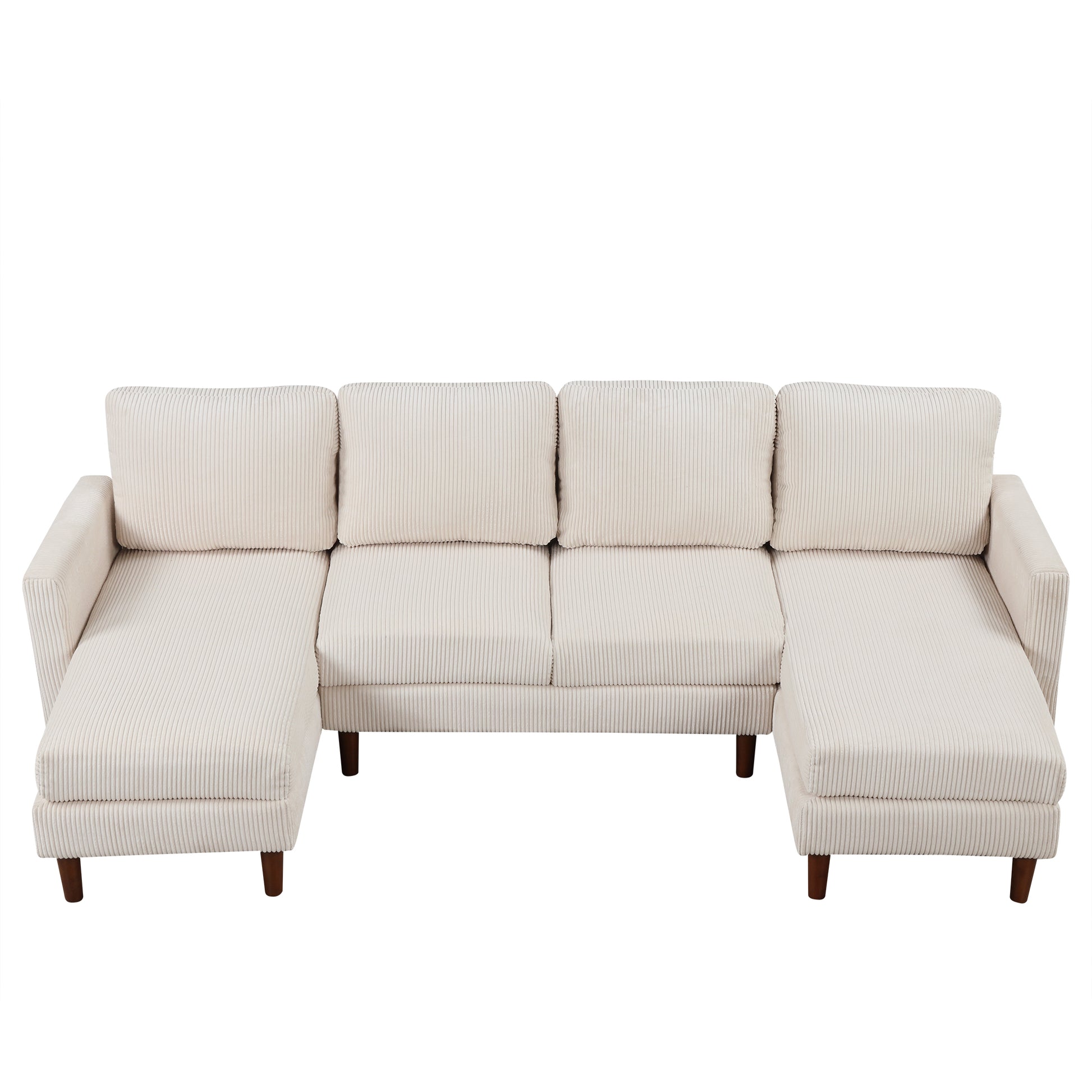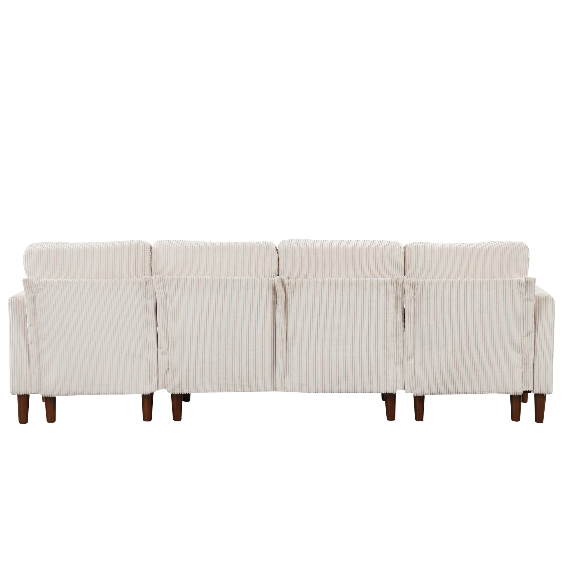 U Shaped Sponge Filled Cushion Combination Sofa, Suitable For Living Rooms, Studies, And Spacious Spaces Beige Polyester 4 Seat