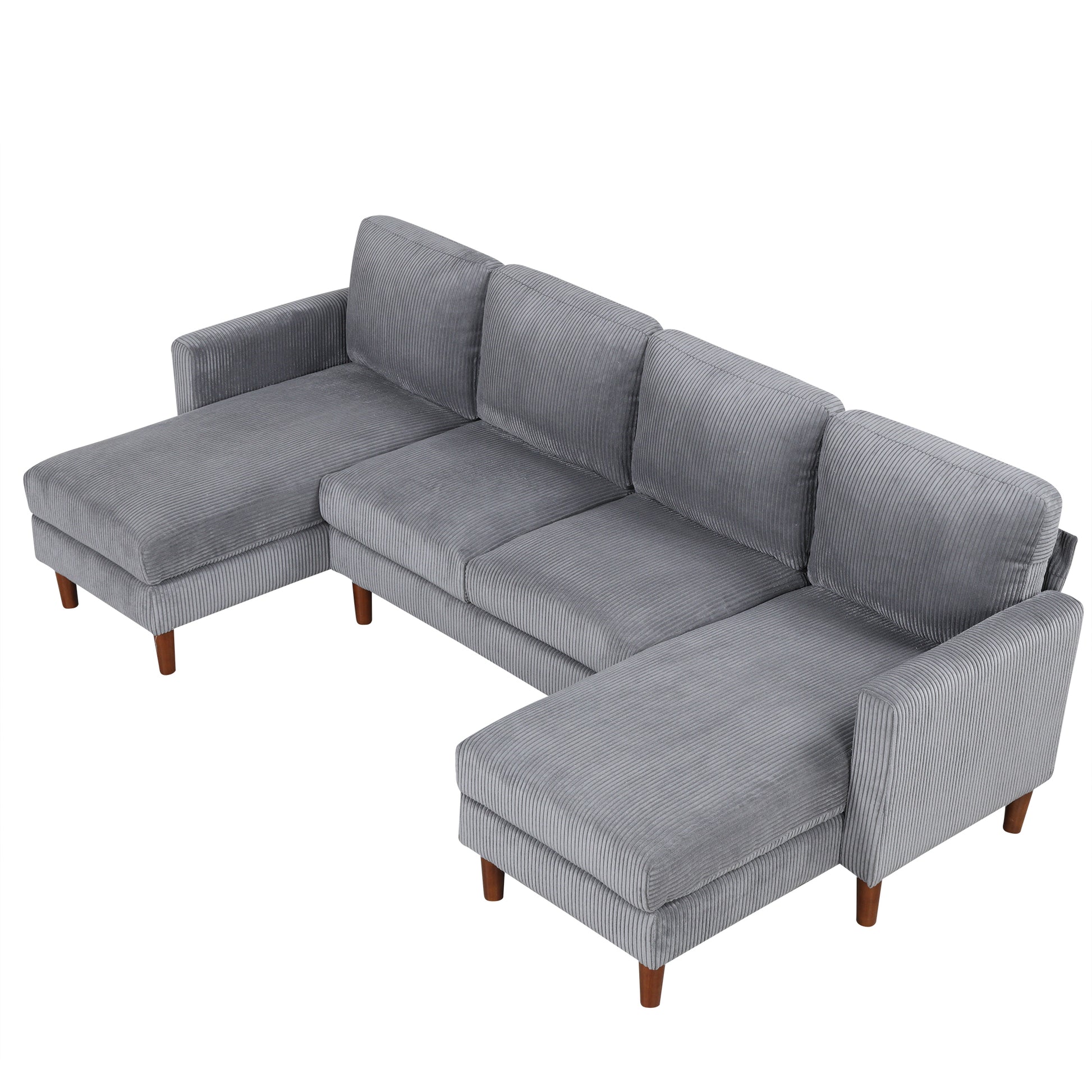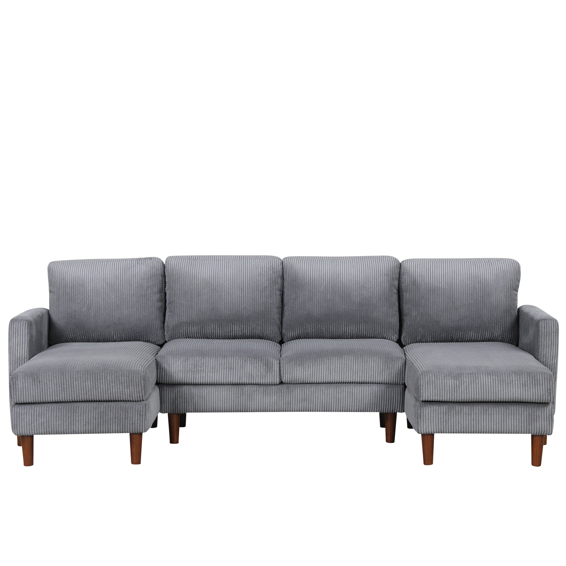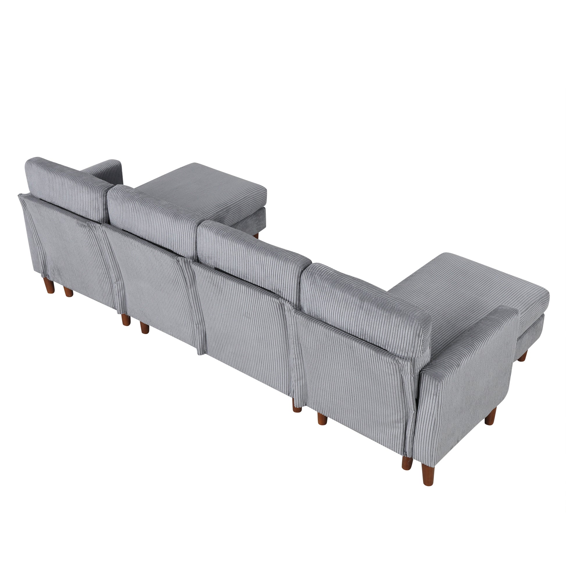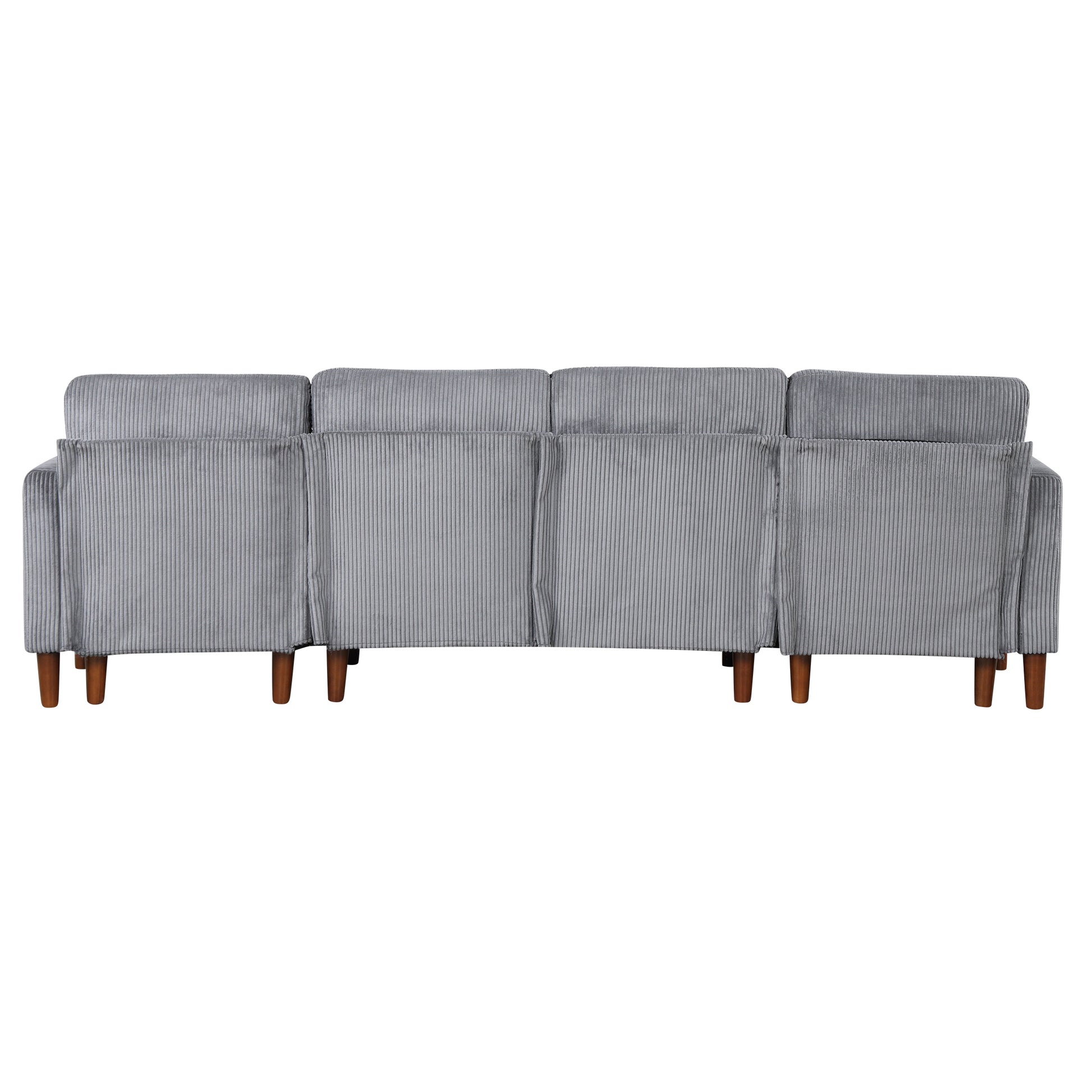 U Shaped Sponge Filled Cushion Combination Sofa, Suitable For Living Rooms, Studies, And Spacious Spaces Gray Polyester 4 Seat