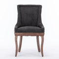 Ultra Side Dining Chair, Thickened Fabric Chairs With Neutrally Toned Solid Wood Legs, Bronze Nail Head, Set Of 2, Blue Black Dining Room American Design Dining Chairs Rubberwood Set Of 2 Foam Fabric
