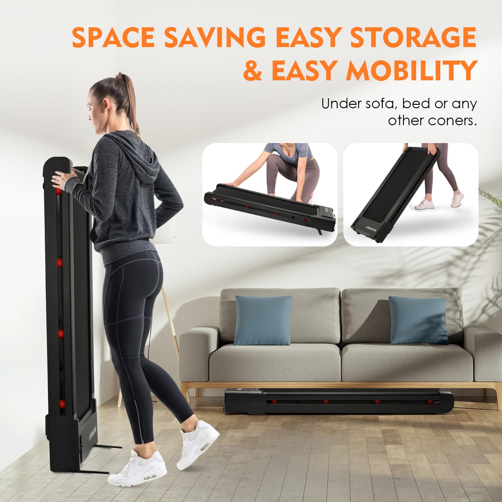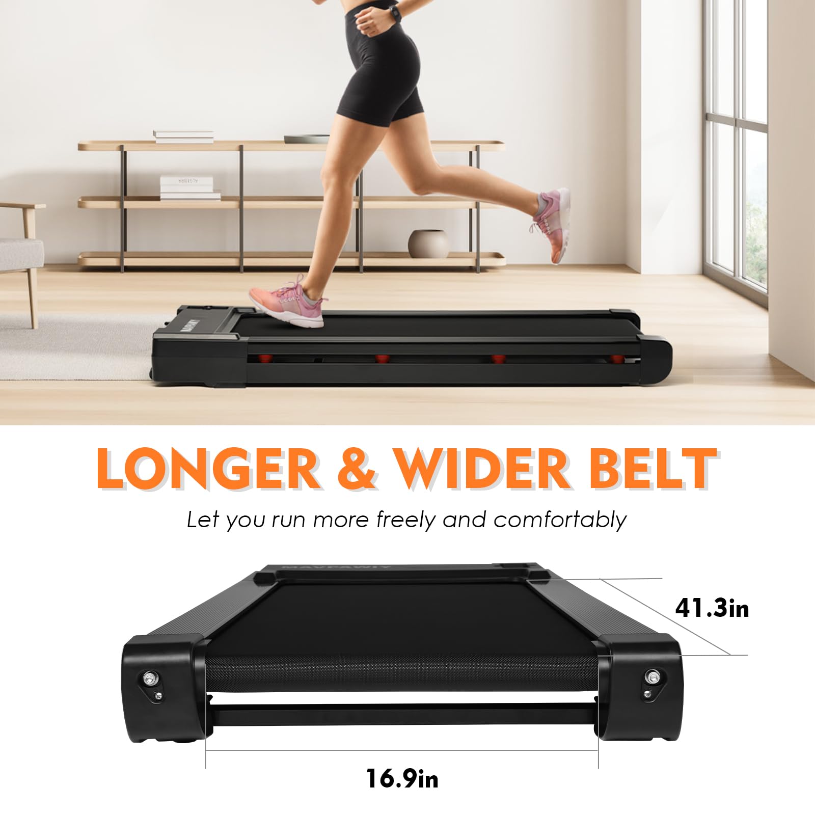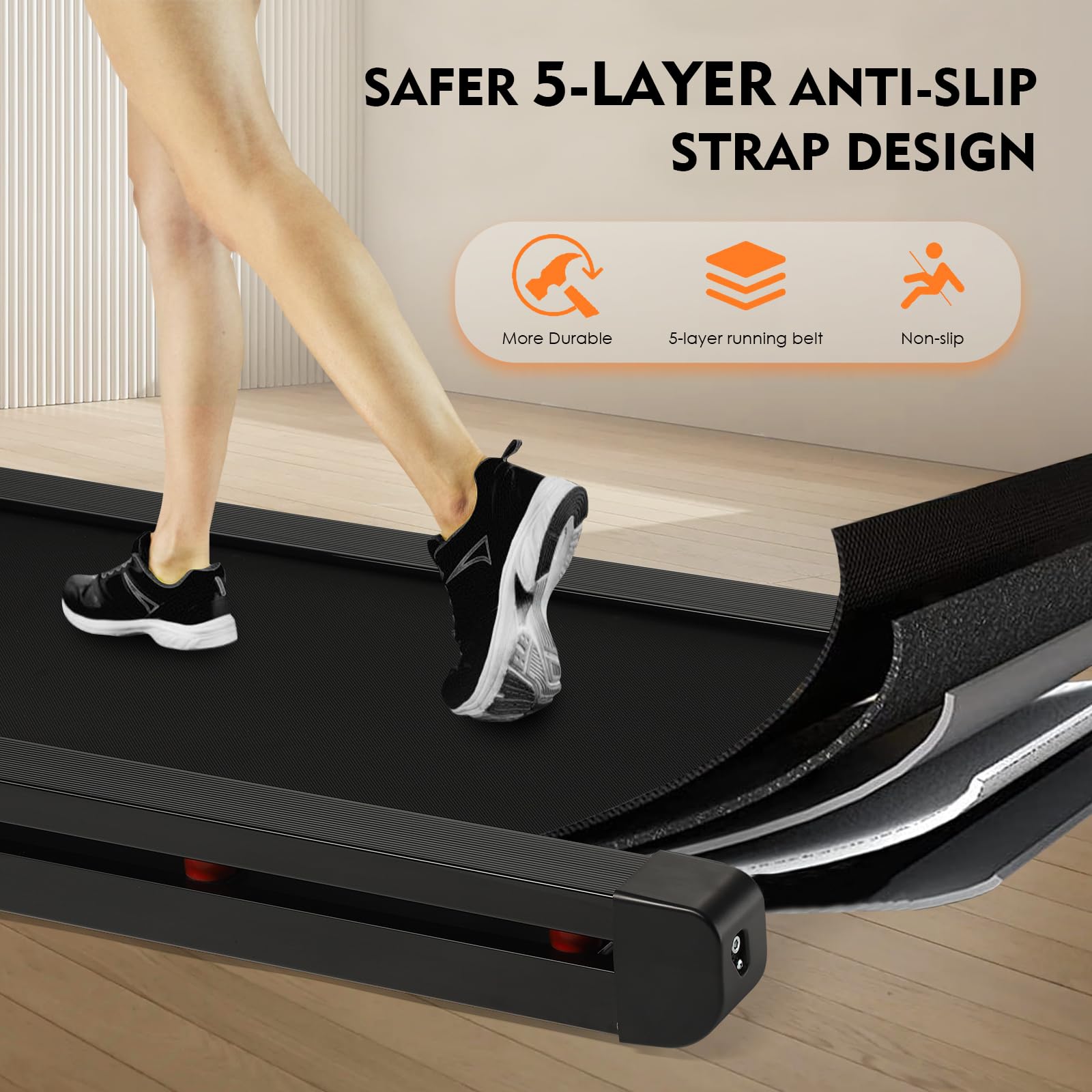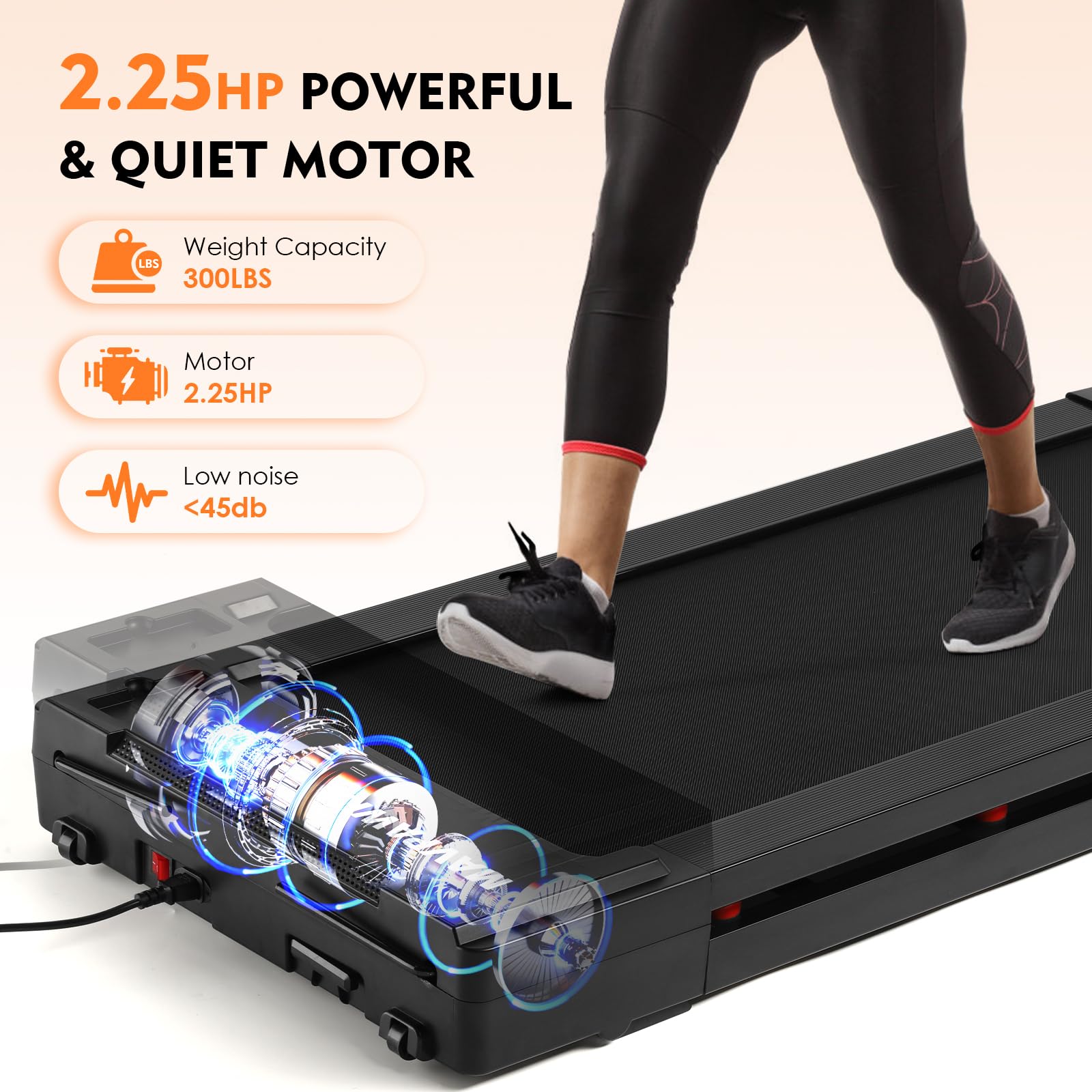 Under Desk Treadmill, Incline Walking Pad Treadmill For Home Office Use, 2.25Hp Quiet Treadmill For Walking And Jogging Indoor Fitness Black Durable Office Modern Body Building Iron Plastic