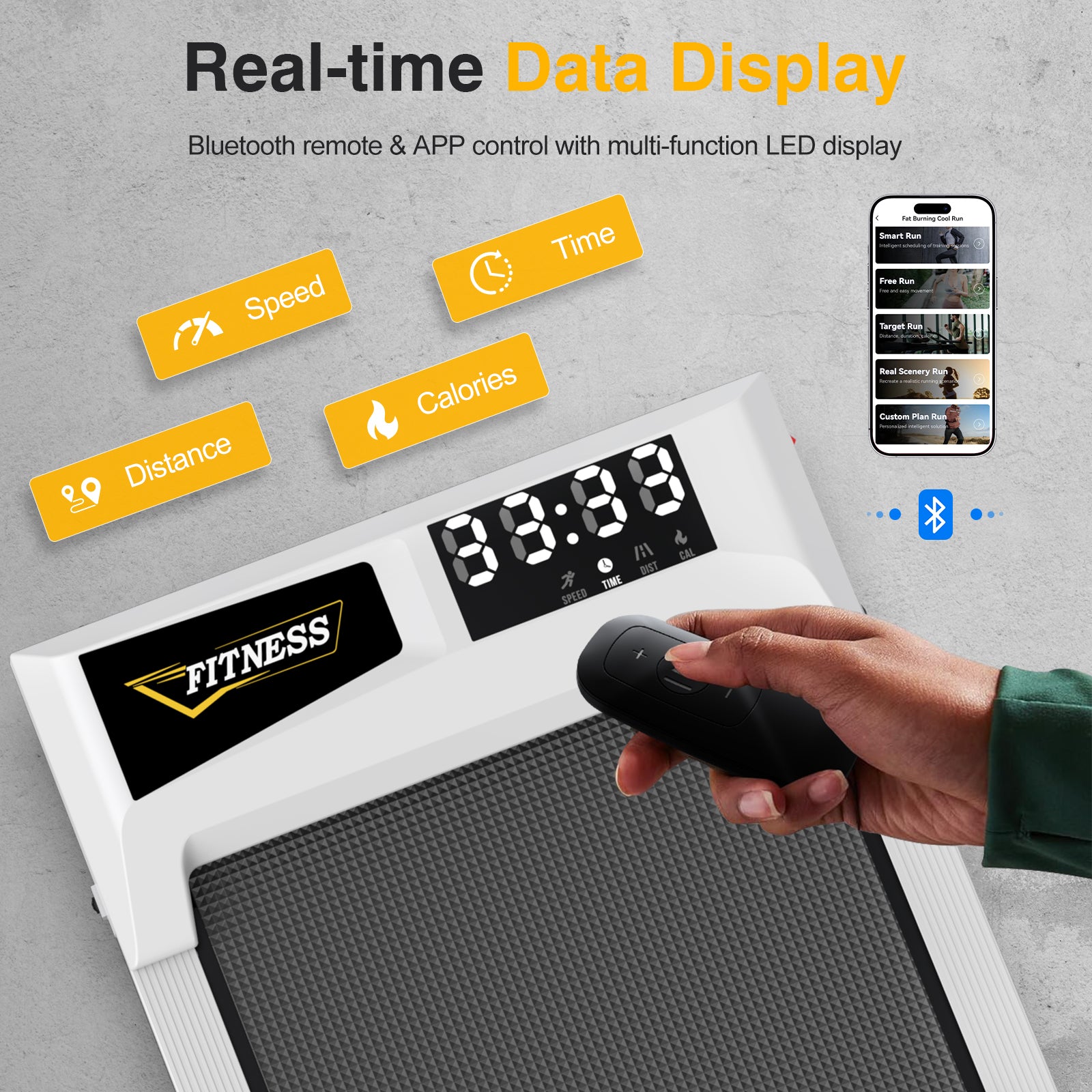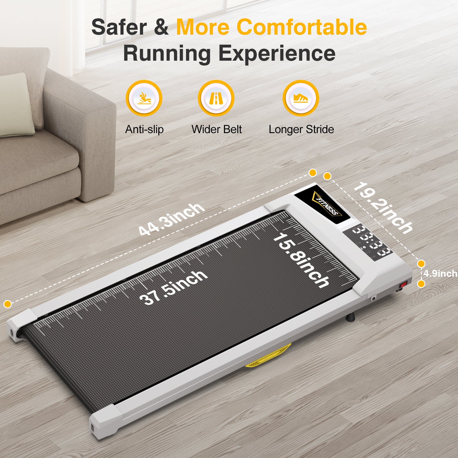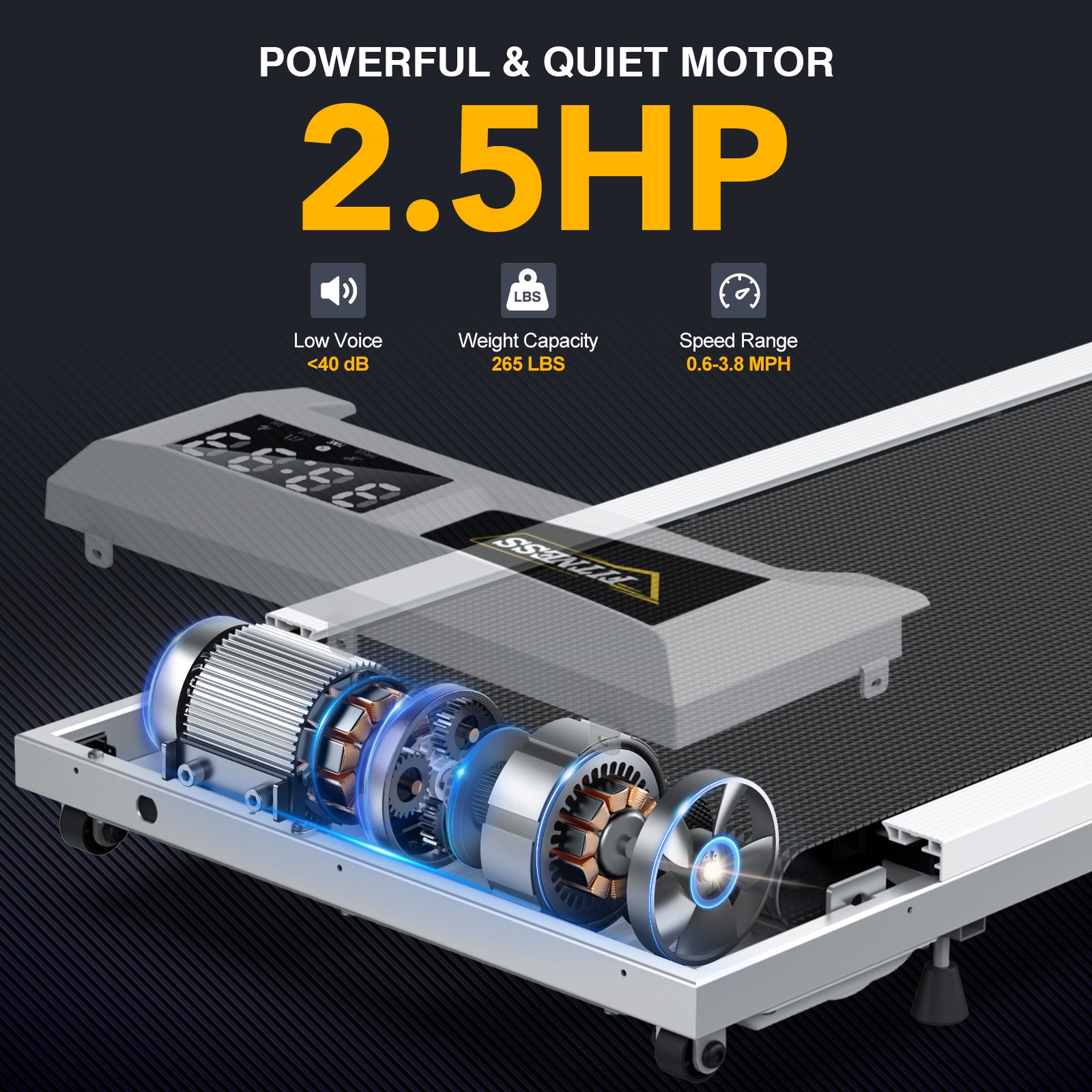 Under Desk Treadmill With Incline, Walking Pad For Home Office, Portable Walking Treadmill 2.5Hp, Walking Jogging Machine With 265 Lbs Weight Capacity App Remote Control Led Display White Gray Anti Slip Abs Rubber Steel Q235