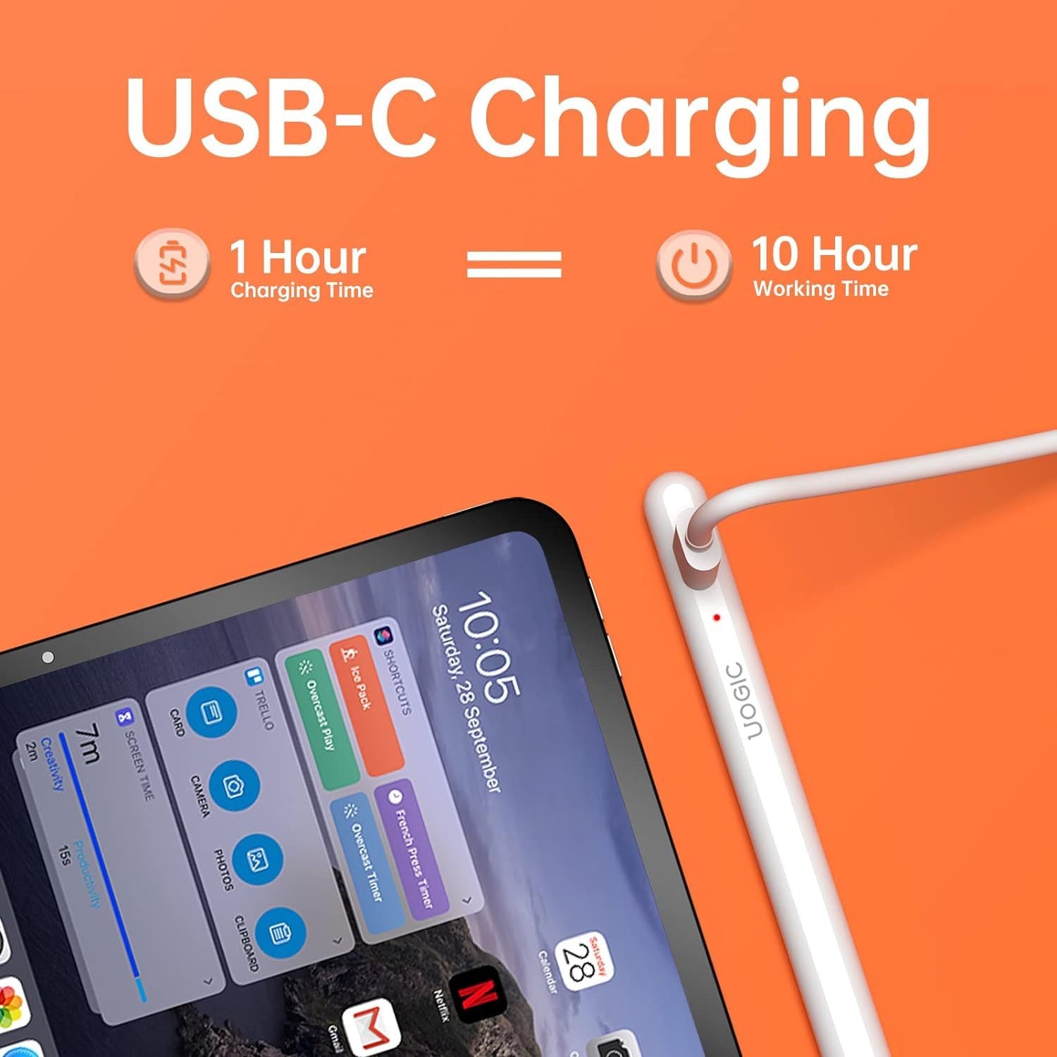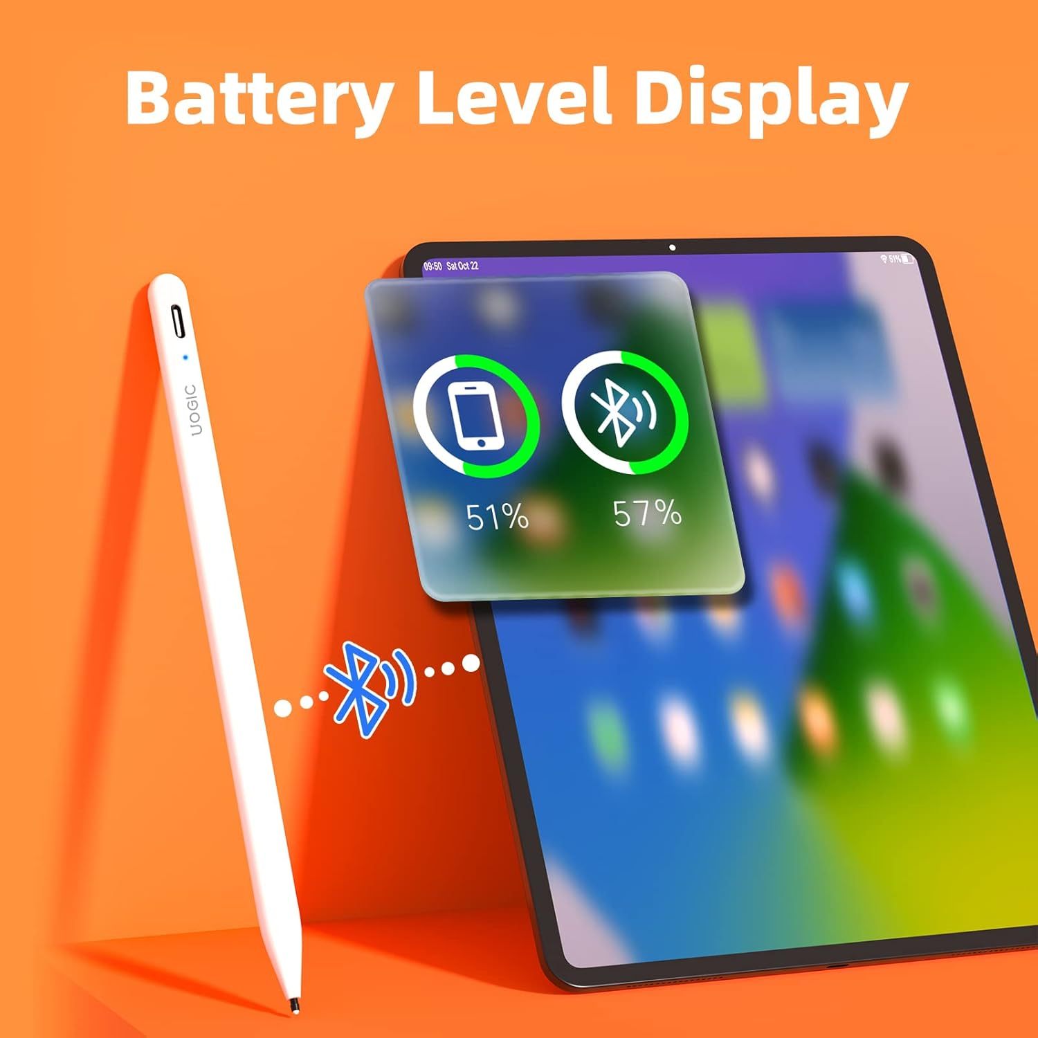 Uogic Stylus For Ipad 2018 2023, Ipad Pen With Bluetooth, Battery Level Display, Palm Rejection, Ipad Pencil Compatible With Ipad 6 7 8 9 10Th,Ipad Pro 11 12.9",Ipad Mini 5 6Th, Ipad Air 3 4 5Th White Aluminium