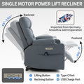 Up To 350 Lbs Power Lift Recliner Chair, Heavy Duty Motion Mechanism With 8 Point Vibration Massage And Lumbar Heating, Cup Holders, Usb And Type C Ports, Removable Cushions, Blue White Metal Primary Living Space Heavy Duty Pine Blue Gray Microfiber