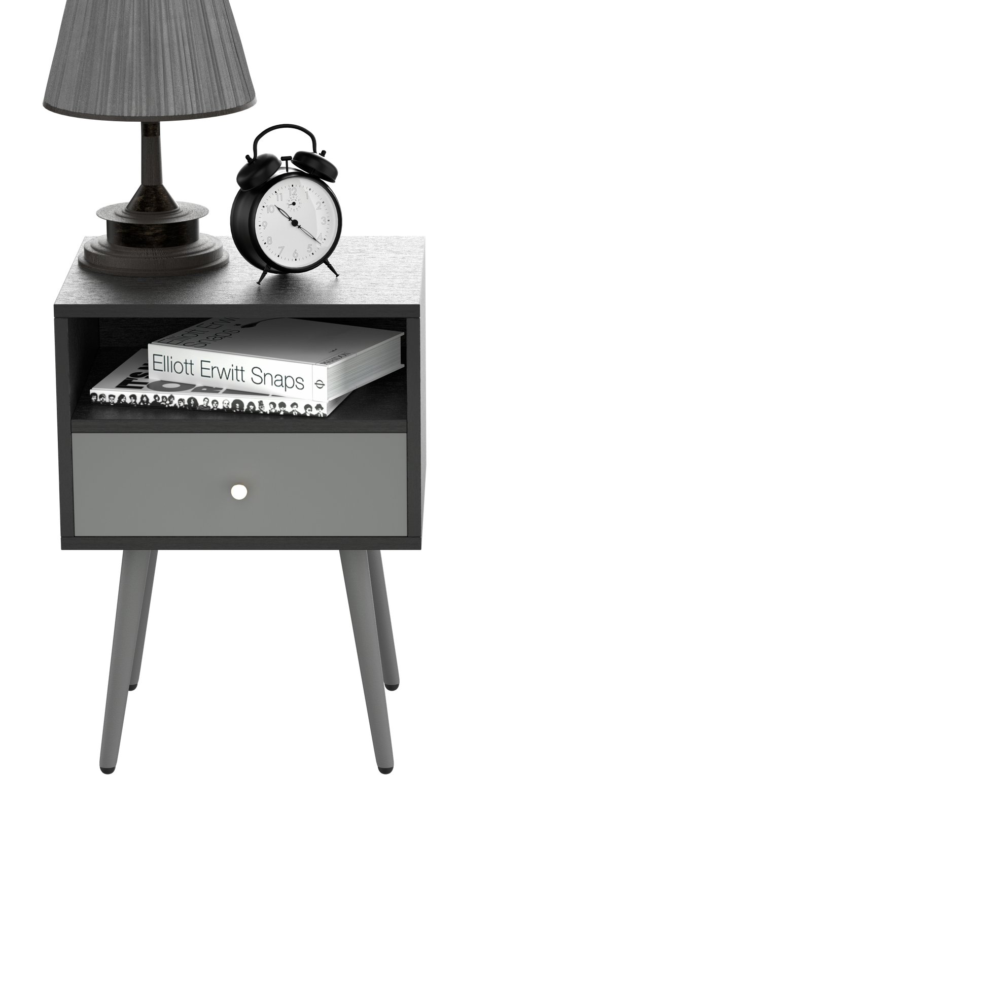 Update Modern Nightstand With 1Drawers, Suitable For Bedroom Living Room Side Table Dark Grey Dark Gray Metal & Wood