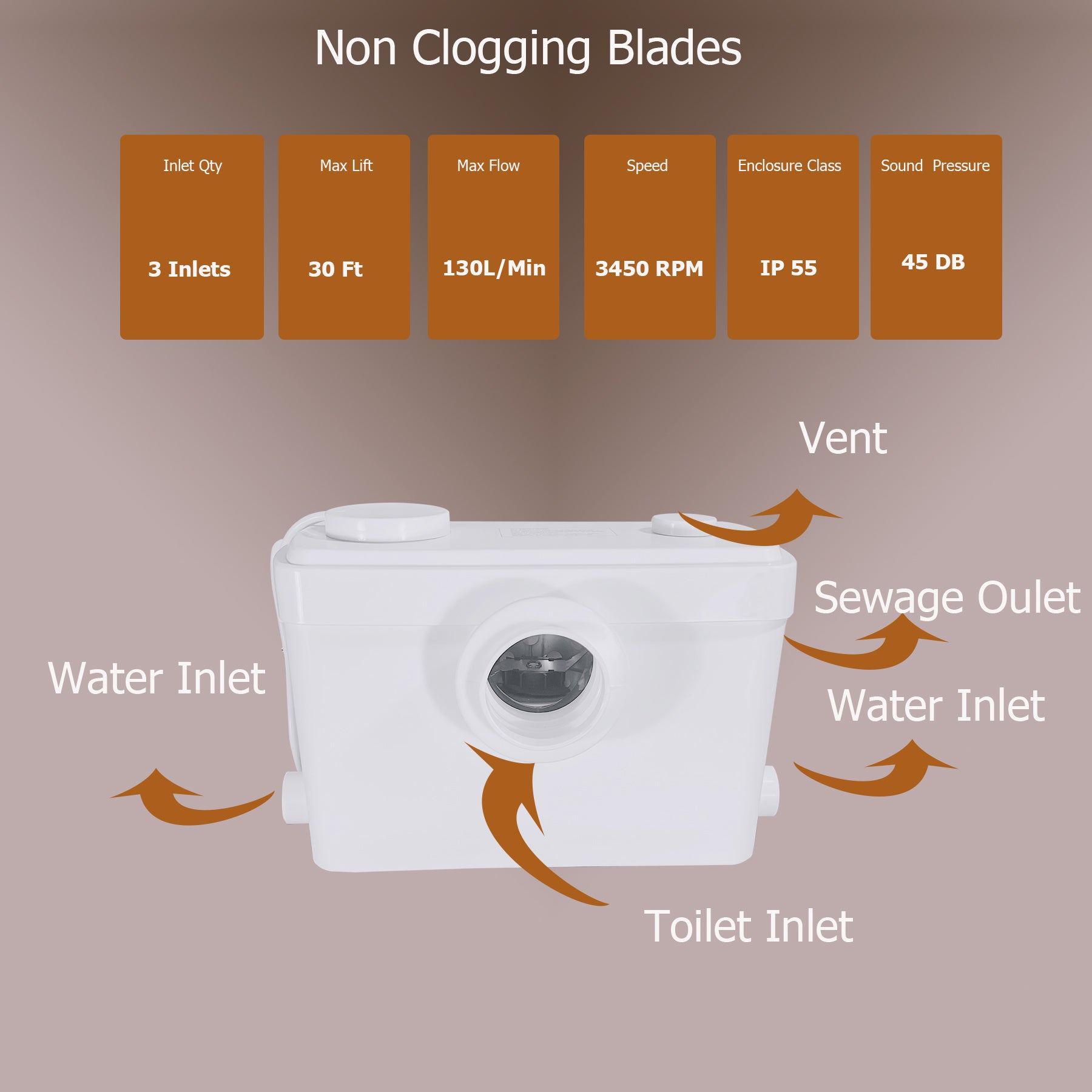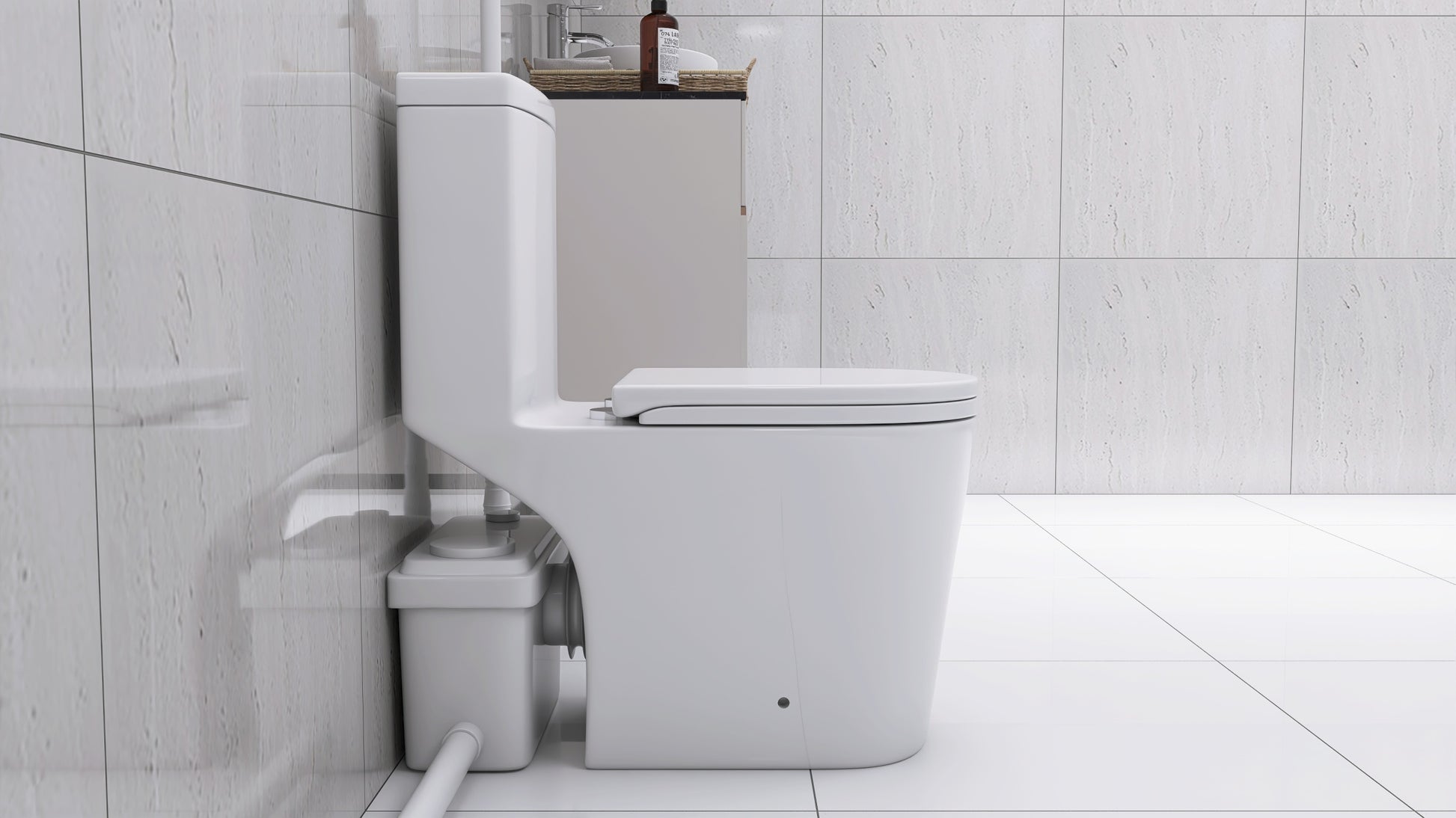 Upflush Toilet For Basement, 600W Macerating Toilet System With Powerful Dual Flush, Elongated 17.25 Ada Comfort, Soft Close Seat, 3 Water Inlets Connect To Sink, Shower, White White Modern Porcelain