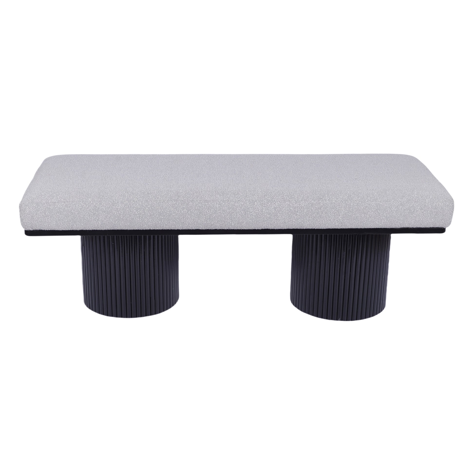 Upholstered Bench With Black Chunky Legs Light Grey Boucle Fabric Contemporary Style Bed End Bench For Bedroom Living Room Light Grey Foam Boucle