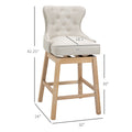 Upholstered Fabric Bar Height Bar Stools, 180 Swivel Trim Pub Chairs, 30" Seat Height With Rubber Wood Legs, Set Of 2, Cream Cream White Linen