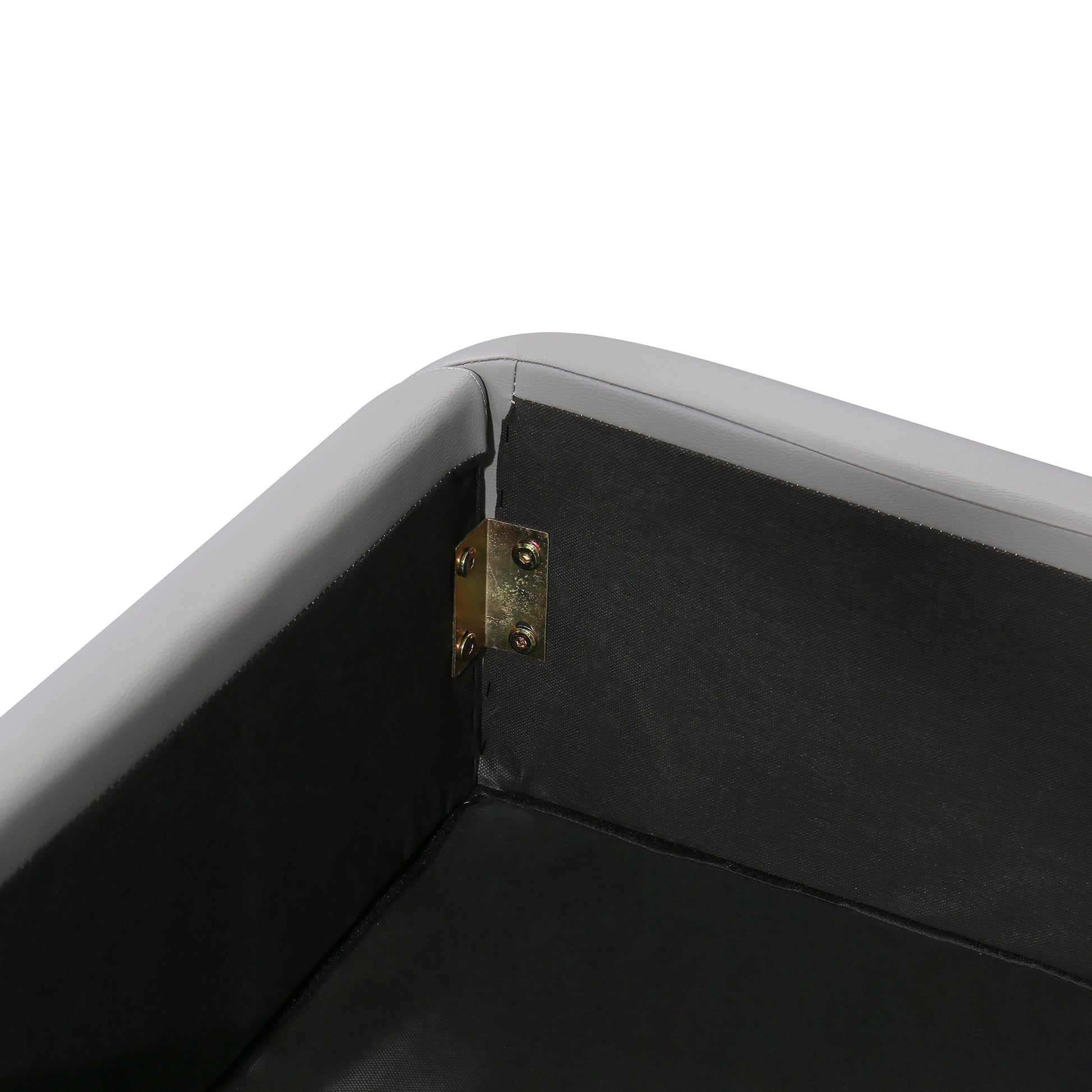 Upholstered Faux Leather Platform Bed With A Hydraulic Storage System With Led Light Headboard Bed Frame With Slatted Queen Size Grey Technical Leather